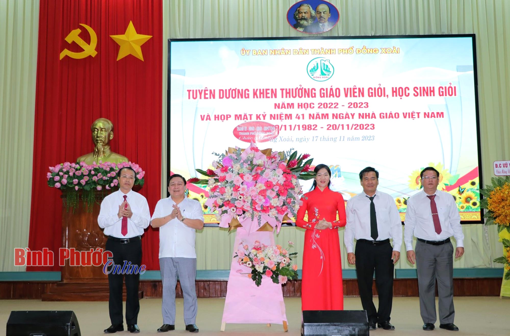 * UBND thành phố Đồng Xoài hôm nay đã tuyên dương, khen thưởng giáo viên giỏi, học sinh giỏi năm học 2022-2023 và họp mặt kỷ niệm 41 năm Ngày nhà giáo Việt Nam.