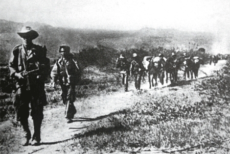 ![]() Địch rút khỏi Lai Châu co cụm về Điện Biên Phủ. Ảnh tư liệu |