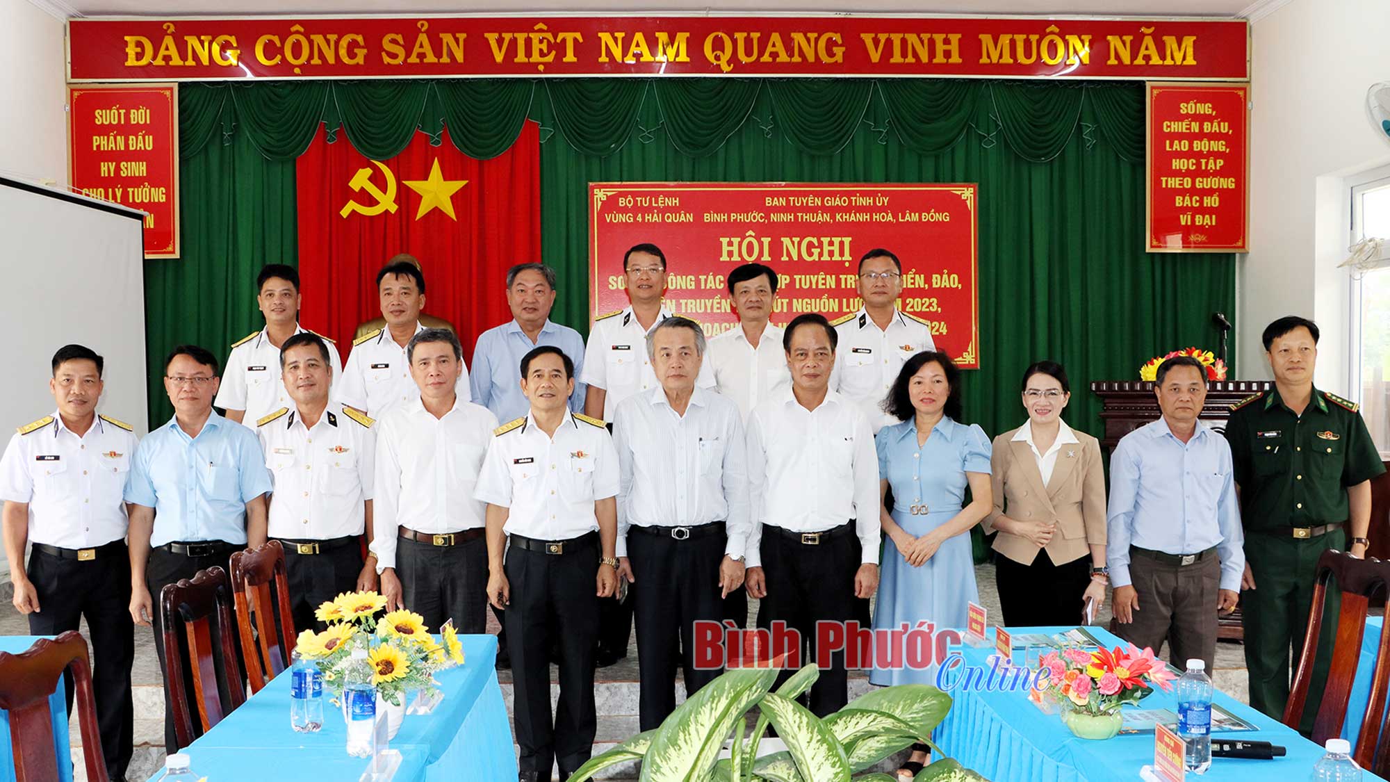 Đại tá Nguyễn Hữu Minh, Phó Chính ủy Vùng 4 Hải quân; Ủy viên Ban Thường vụ, Trưởng ban Tuyên giáo Tỉnh ủy Bình Phước Vũ Tiến Điền; Ủy viên Ban Thường vụ, Trưởng ban Tuyên giáo Tỉnh ủy Ninh Thuận Trần Minh Nam; Phó Trưởng ban Tuyên giáo Tỉnh ủy Khánh Hòa Trần Mộng Điệp; Phó Trưởng ban Tuyên giáo Tỉnh ủy Lâm Đồng Nguyễn Thị Mỵ đồng chủ trì hội nghị.