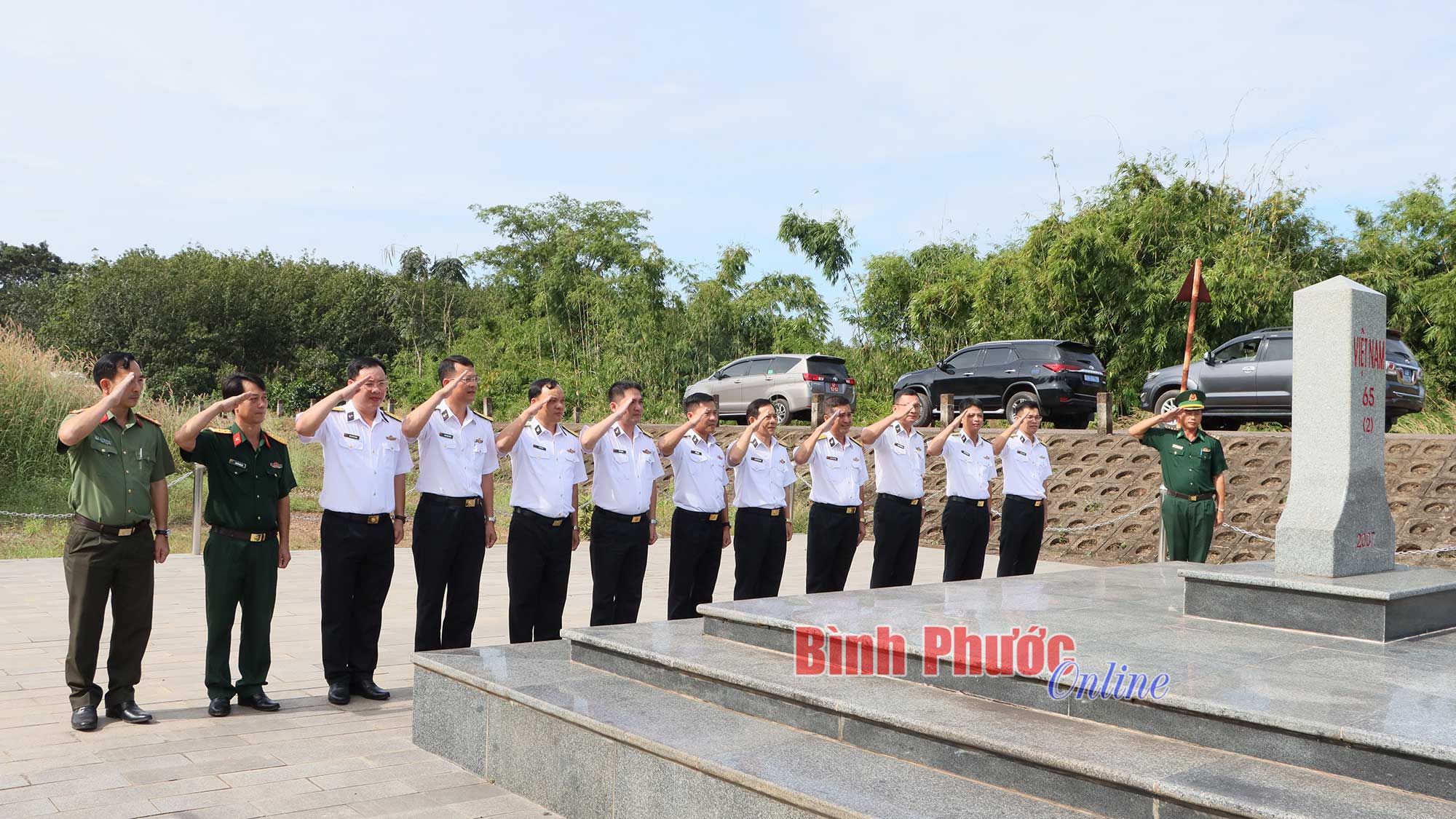 Các đại biểu đến thăm, thực hiện nghi thức chào cột mốc biên giới tại xã Hưng Phước