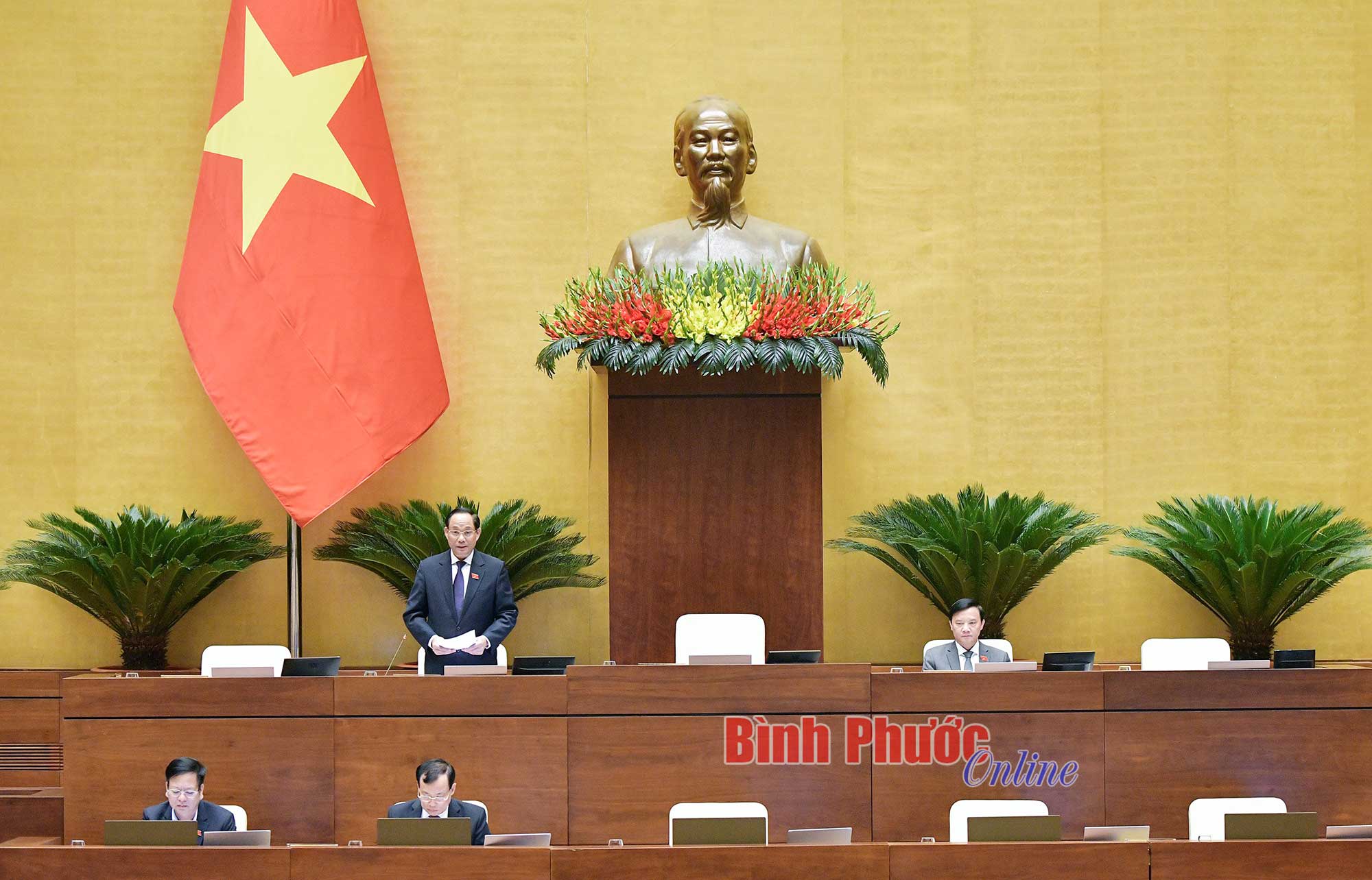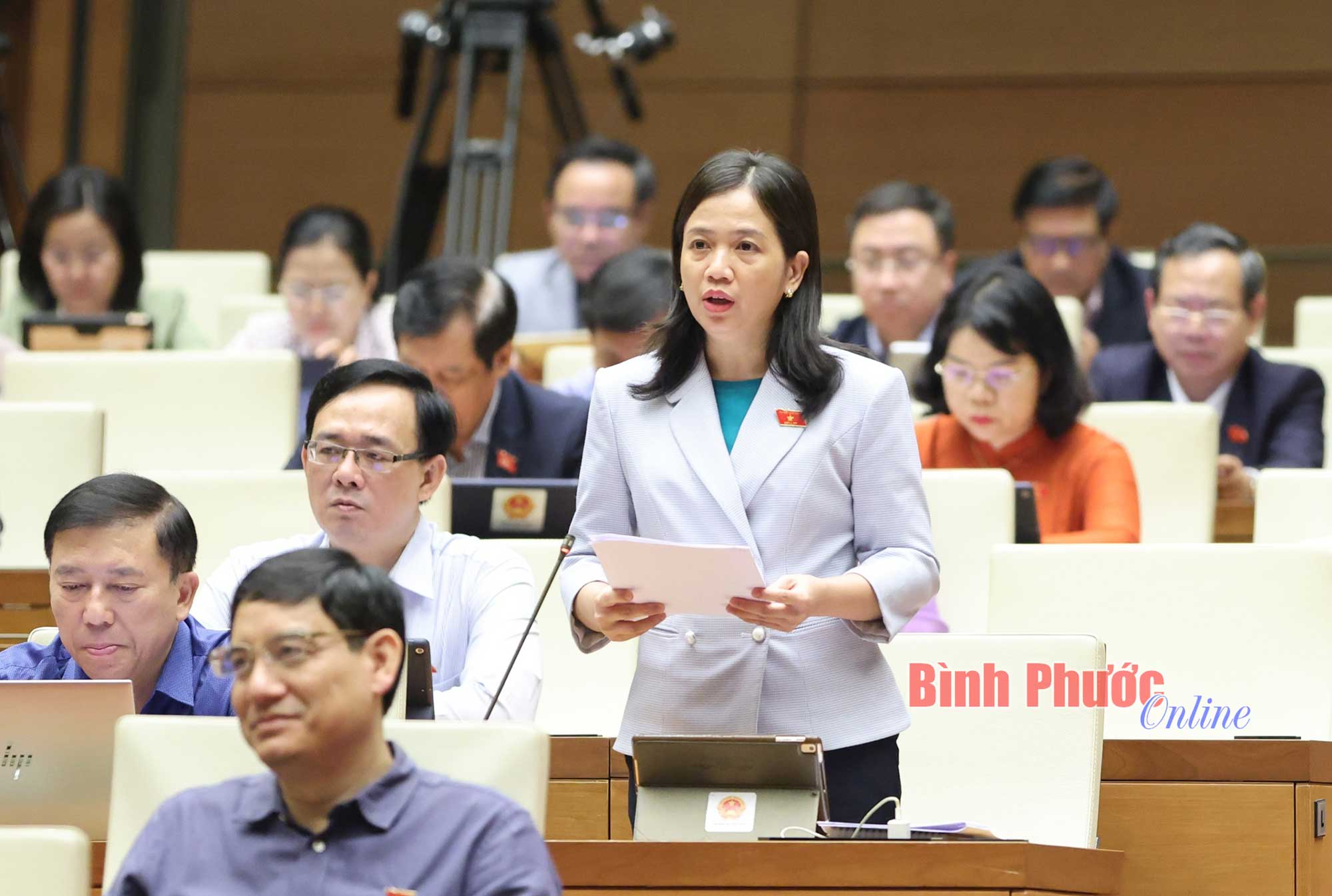 Đại biểu Điểu Huỳnh Sang, Phó Trưởng đoàn chuyên trách, phụ trách Đoàn ĐBQH tỉnh Bình Phước phát biểu thảo luận chiều 24-11