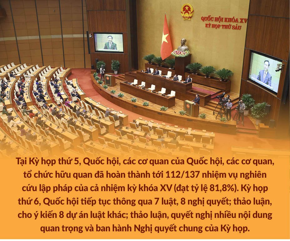 Sau 22,5 ngày làm việc nghiêm túc, khẩn trương, khoa học, dân chủ và trách nhiệm cao, Kỳ họp thứ 6, Quốc hội khóa XV đã hoàn thành toàn bộ nội dung chương trình đề ra.