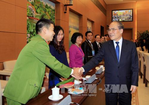 Chủ tịch Quốc hội Nguyễn Sinh Hùng gặp mặt đoàn các thầy thuốc trẻ. Ảnh TTXVN