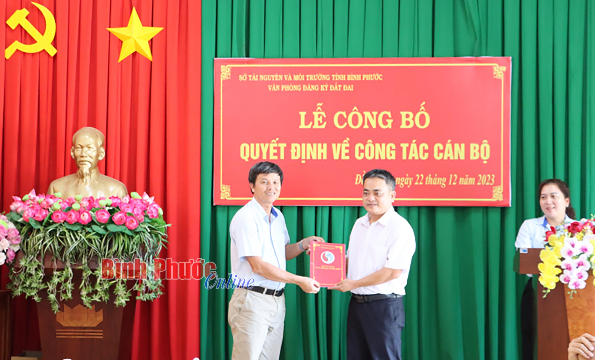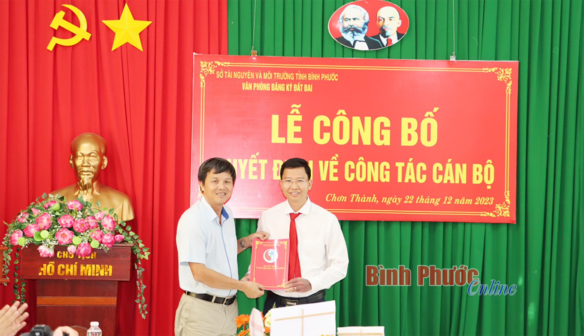 Theo đó, luân chuyển ông Lương Ngọc Dinh, Giám đốc Chi nhánh VPĐKĐĐ huyện Đồng Phú đến nhận công tác tại Chi nhánh VPĐKĐĐ thị xã Chơn Thành và bổ nhiệm làm Giám đốc Chi nhánh VPĐKĐĐ thị xã Chơn Thành.