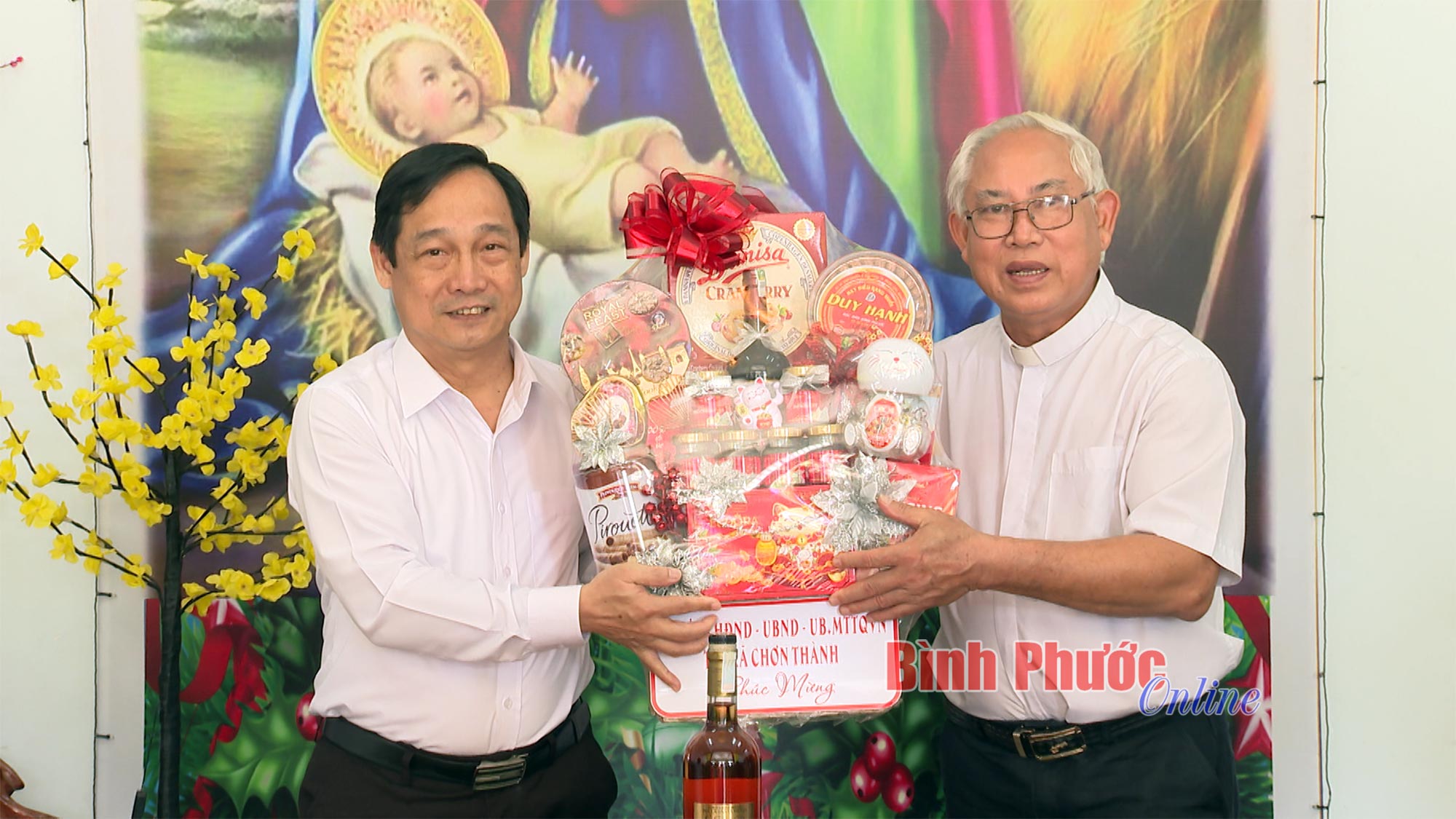 Lãnh đạo thị xã Chơn Thành đã đến chúc mừng 7 giáo xứ và 4 cơ sở Tin lành trên địa bàn thị xã. Tại các nơi đến, lãnh đạo thị xã đã ân cần hỏi thăm sức khỏe các mục sư, linh mục và đánh giá cao tinh thần của tín đồ, giáo dân trong các phong trào thi đua yêu nước và phát triển kinh tế - xã hội ở địa phương. Lãnh đạo thị xã mong muốn các vị mục sư, linh mục, hội đồng giáo xứ tiếp tục kết hợp, lồng ghép, cùng Đảng và chính quyền địa phương tuyên truyền, vận động giáo dân chấp hành tốt chủ trương, đường lối của Đảng, chính sách pháp luật của Nhà nước; làm tốt công tác đoàn kết dân tộc, “sống tốt đời đẹp đạo”.