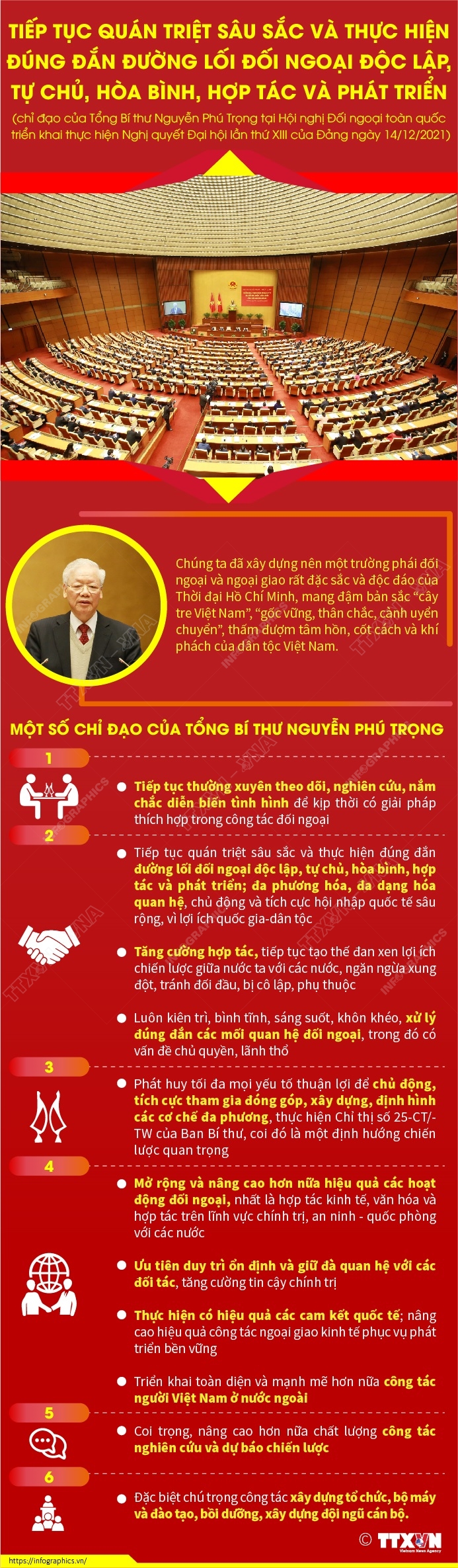 Tổng Bí thư Nguyễn Phú Trọng - ngọn cờ lý luận của Đảng đã khái quát đặc trưng của nền ngoại giao Việt Nam gắn với hình ảnh “cây tre Việt Nam”: gốc vững, thân chắc, cành uyển chuyển; thấm đượm tâm hồn, cốt cách và khí phách của dân tộc Việt Nam.
