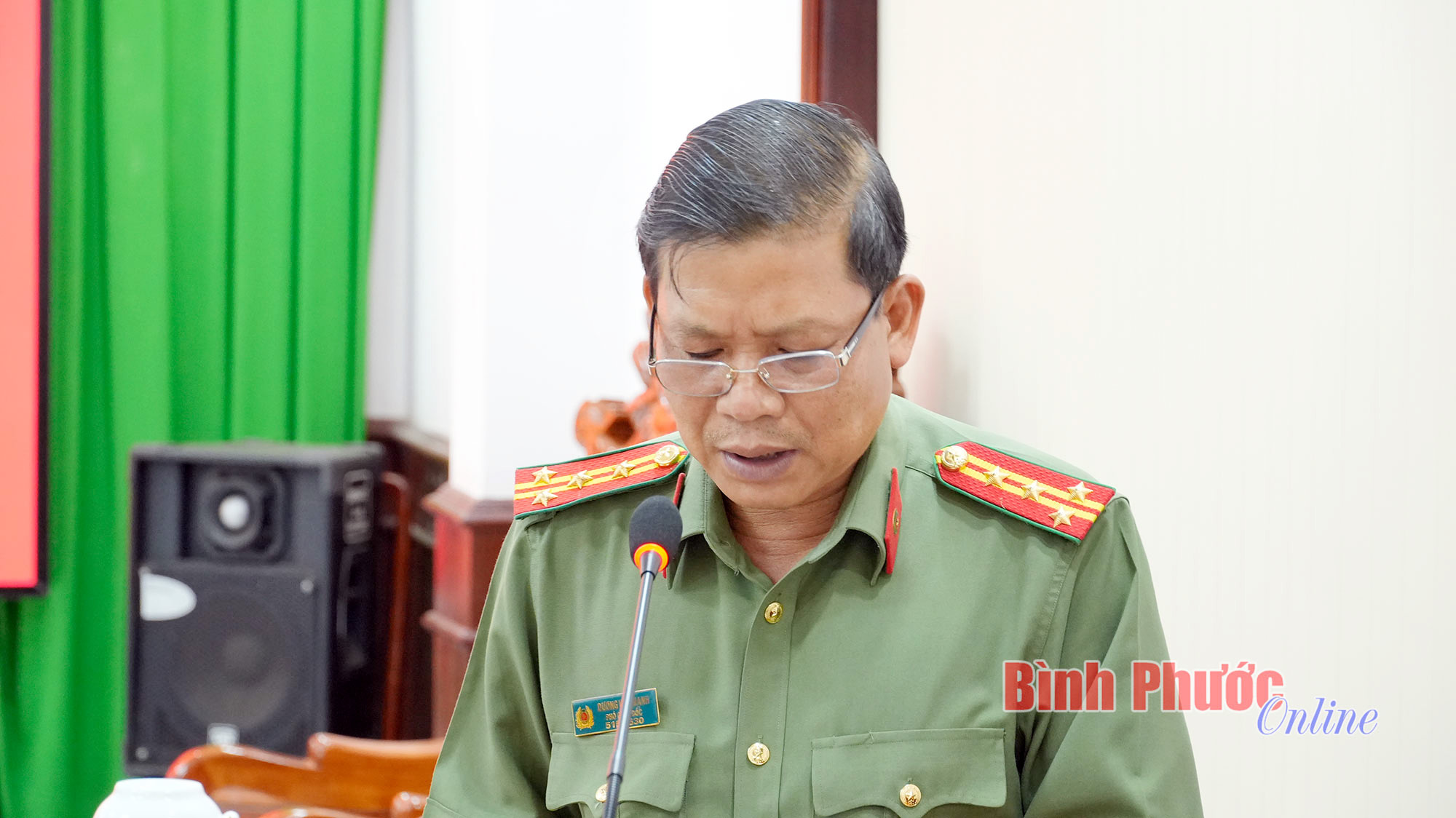 Đại tá Dương Văn Mạnh, Tỉnh ủy viên, Phó Bí thư Đảng ủy, Phó Giám đốc Công an tỉnh trình bày báo cáo tại hội nghị