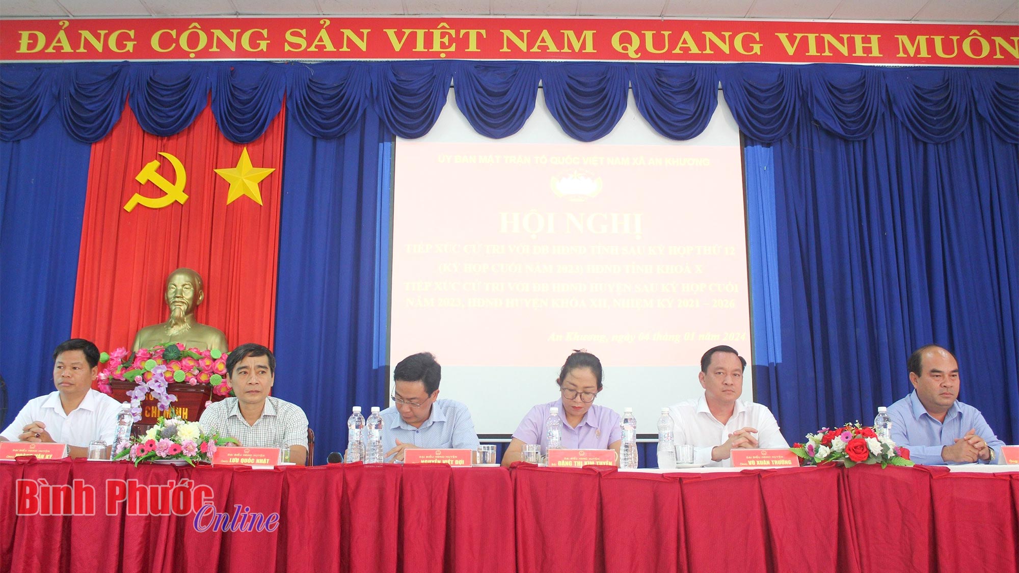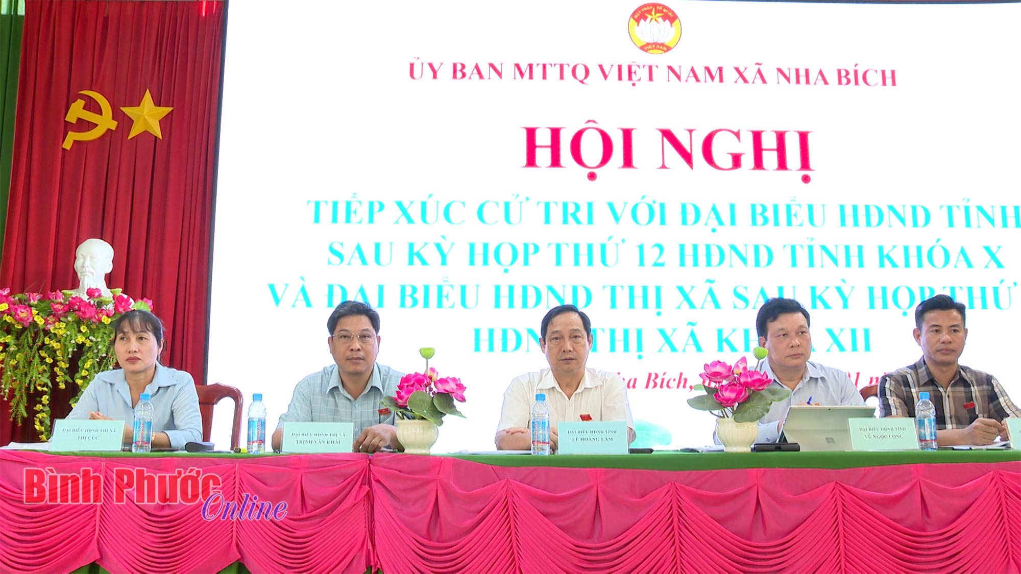 * Chiều 4-1, các đại biểu HĐND tỉnh Lê Hoàng Lâm, Ủy viên Ban Thường vụ Tỉnh ủy, Bí thư Thị ủy Chơn Thành; Vũ Ngọc Long, Giám đốc Sở Công Thương; Vũ Thanh Ngữ, Phó Trưởng ban Văn hóa - Xã hội, HĐND tỉnh cùng các đại biểu HĐND thị xã Chơn Thành đã có buổi tiếp xúc cử tri xã Nha Bích.