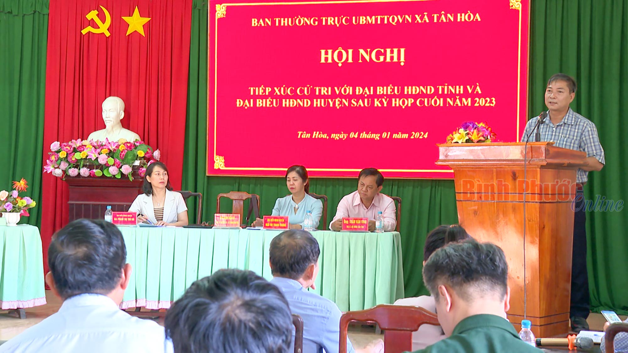* Đại biểu HĐND tỉnh Trần Văn Vinh, Tỉnh ủy viên, Chủ tịch hội Nông dân tỉnh cùng tổ đại biểu HĐND huyện Đồng Phú, chiều 4-1, đã tiếp xúc cử tri 2 xã Tân Hòa và Tân Lợi.