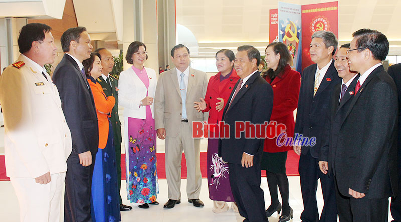 Đoàn đại biểu Đảng bộ tỉnh Bình Phước trao đổi bên lề Đại hội XII của Đảng - Ảnh: Phạm Tăng