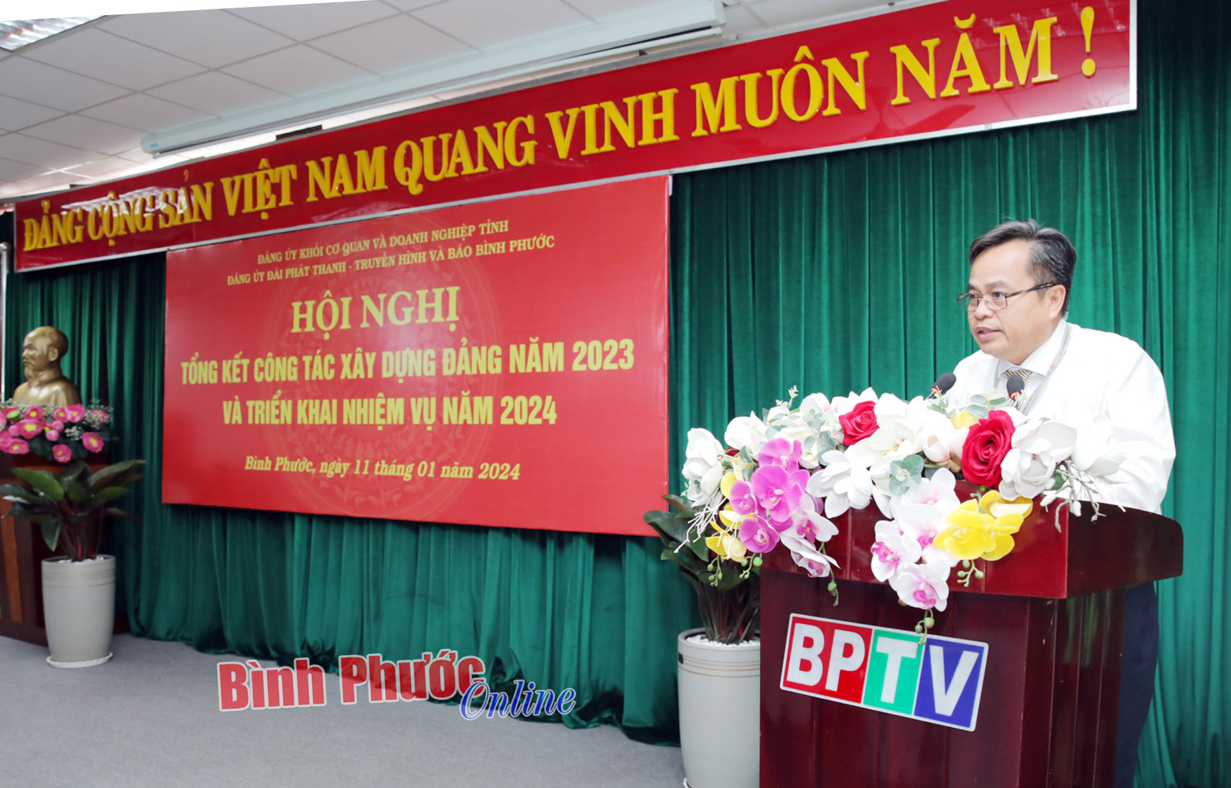 Ủy viên Ban Thường vụ Đảng ủy BPTV Nguyễn Trường Hải báo cáo tóm tắt kết quả công tác xây dựng Đảng năm 2023, triển khai phương hướng, nhiệm vụ năm 2024