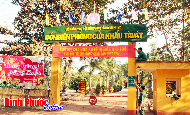 Trước cổng mỗi đồn biên phòng đều treo băng rôn, khẩu hiệu chào mừng Đại hội Đảng toàn quốc lần thứ XII