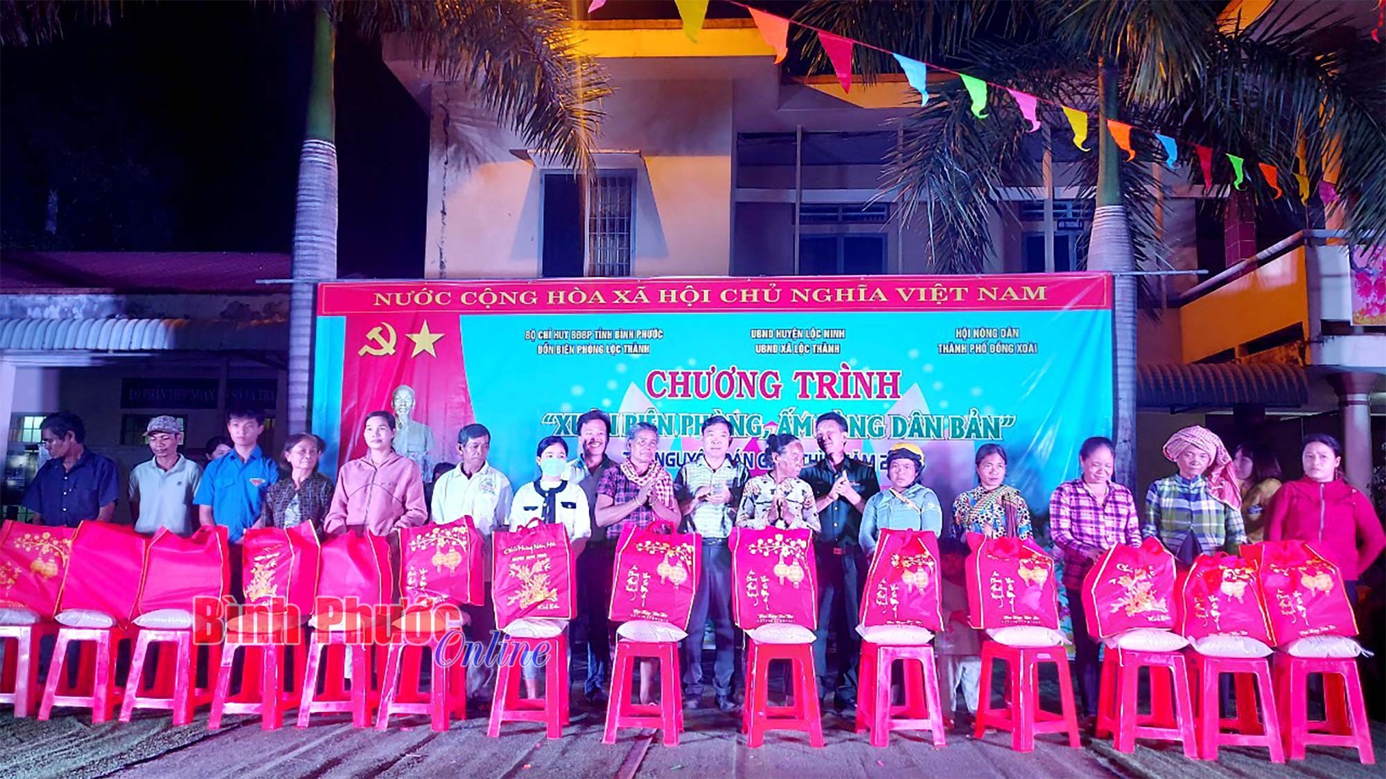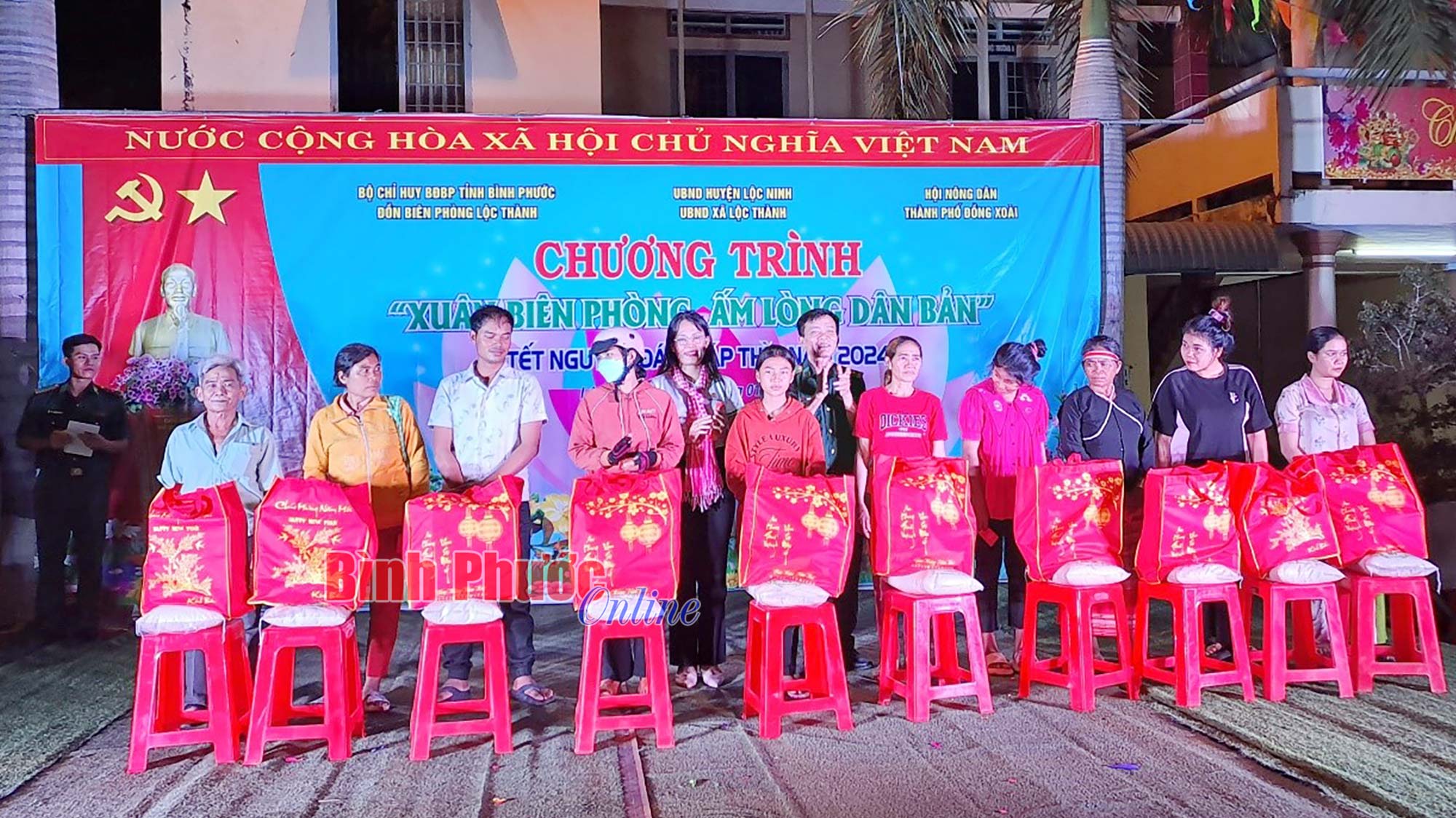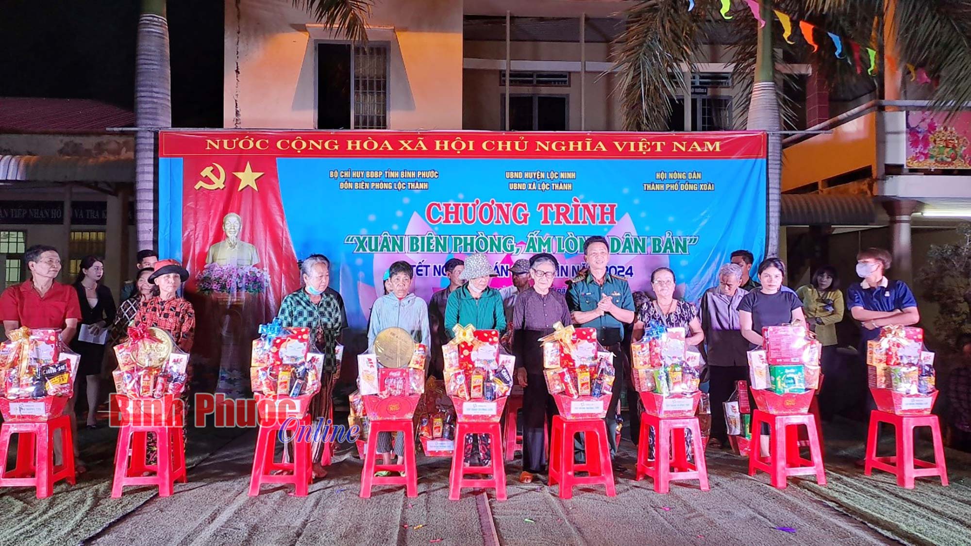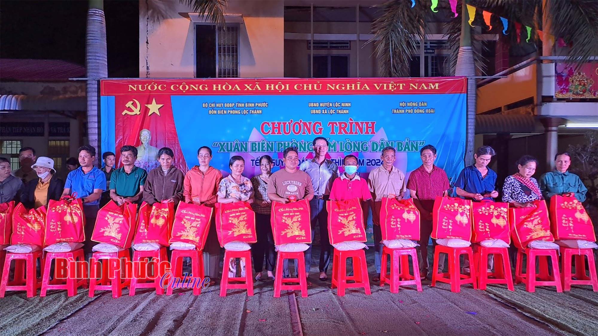 Trong khuôn khổ chương trình, cán bộ, chiến sĩ Đồn biên phòng Lộc Thành, đông đảo người dân, học sinh địa phương đã tham gia hoạt động giao lưu văn hóa - văn nghệ, trò chơi dân gian, tham quan, thưởng thức ẩm thực tại các gian hàng. Cùng với đó là nhiều món hàng miễn phí khi tham gia phiên chợ 0 đồng do Hội Nông dân thành phố Đồng Xoài tổ chức. Với sự đồng hành của các nhà hảo tâm, mạnh thường quân, nhiều phần quà gồm nhu yếu phẩm thiết yếu, tiền mặt đã được trao cho các gia đình chính sách, hộ nghèo, trẻ em có hoàn cảnh khó khăn. Đồn biên phòng Lộc Thành cũng đã trao biểu trưng tặng nhà tình thương cho hộ nghèo khó khăn về nhà của địa phương.