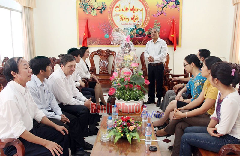 Đoàn chúc tết của tỉnh do đồng chí Trần Tuyết Minh, Trưởng ban Tuyên giáo Tỉnh ủy làm trưởng đoàn chúc tết tại cơ quan Báo Bình Phước