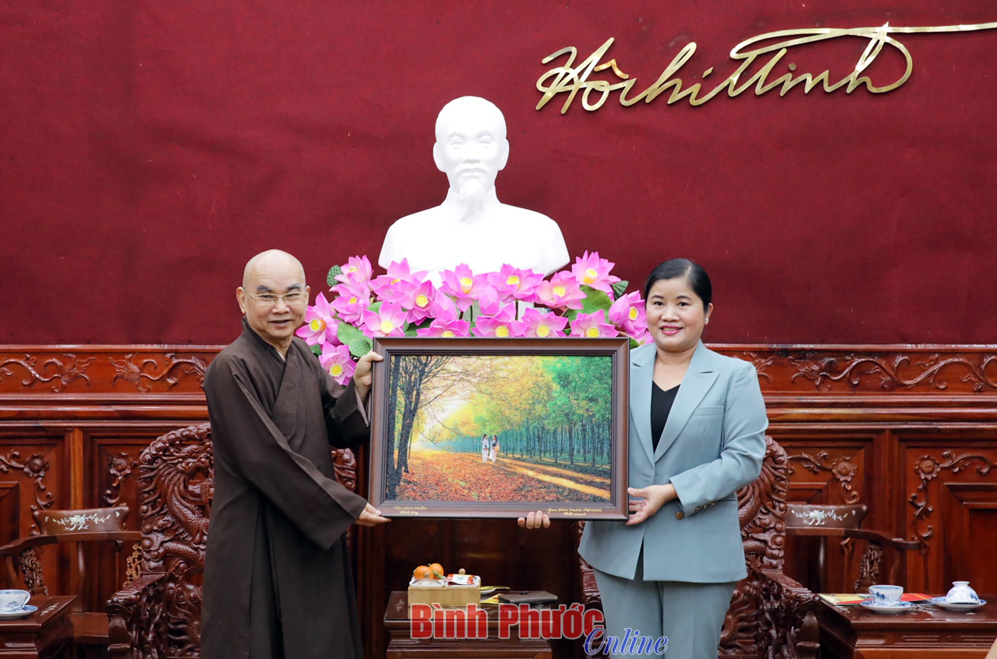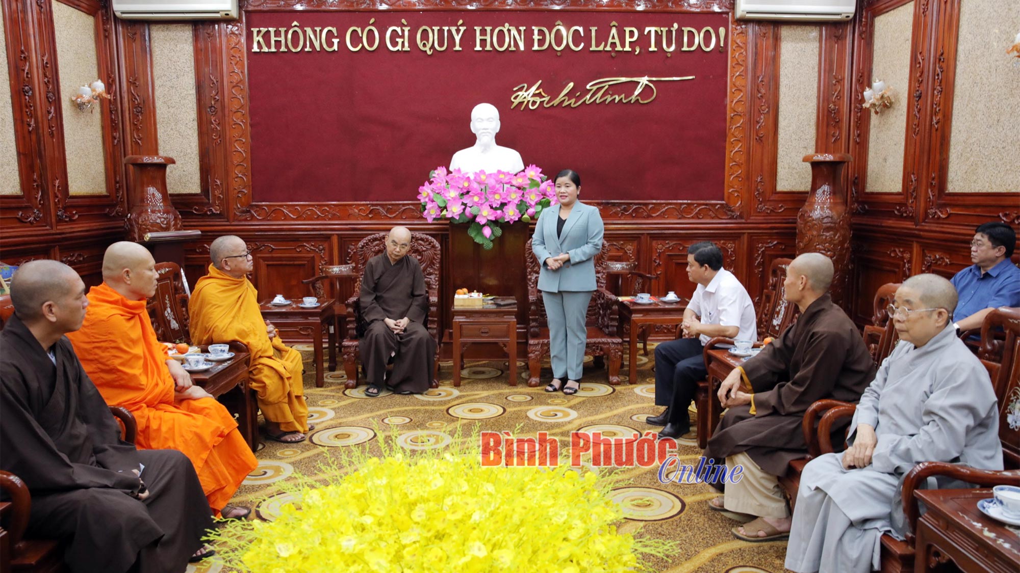 Đại diện Ban Trị sự Giáo hội Phật giáo Việt Nam tỉnh cũng đã chúc mừng những thành quả mà Đảng bộ, chính quyền và nhân dân Bình Phước đạt được trong năm 2023, chúc Bình Phước tiếp tục thực hiện thắng lợi nhiệm vụ đề ra trong năm 2024; đồng thời khẳng định lãnh đạo tỉnh, các ban, ngành đã luôn quan tâm, hỗ trợ công tác phật sự trong tỉnh. Ban Trị sự Giáo hội Phật giáo Việt Nam tỉnh cũng mong muốn tiếp tục nhận được sự quan tâm của lãnh đạo tỉnh, giúp Giáo hội Phật giáo Việt Nam tỉnh tiếp tục phát triển, đóng góp nhiều hơn vào sự nghiệp phát triển chung của tỉnh nhà.