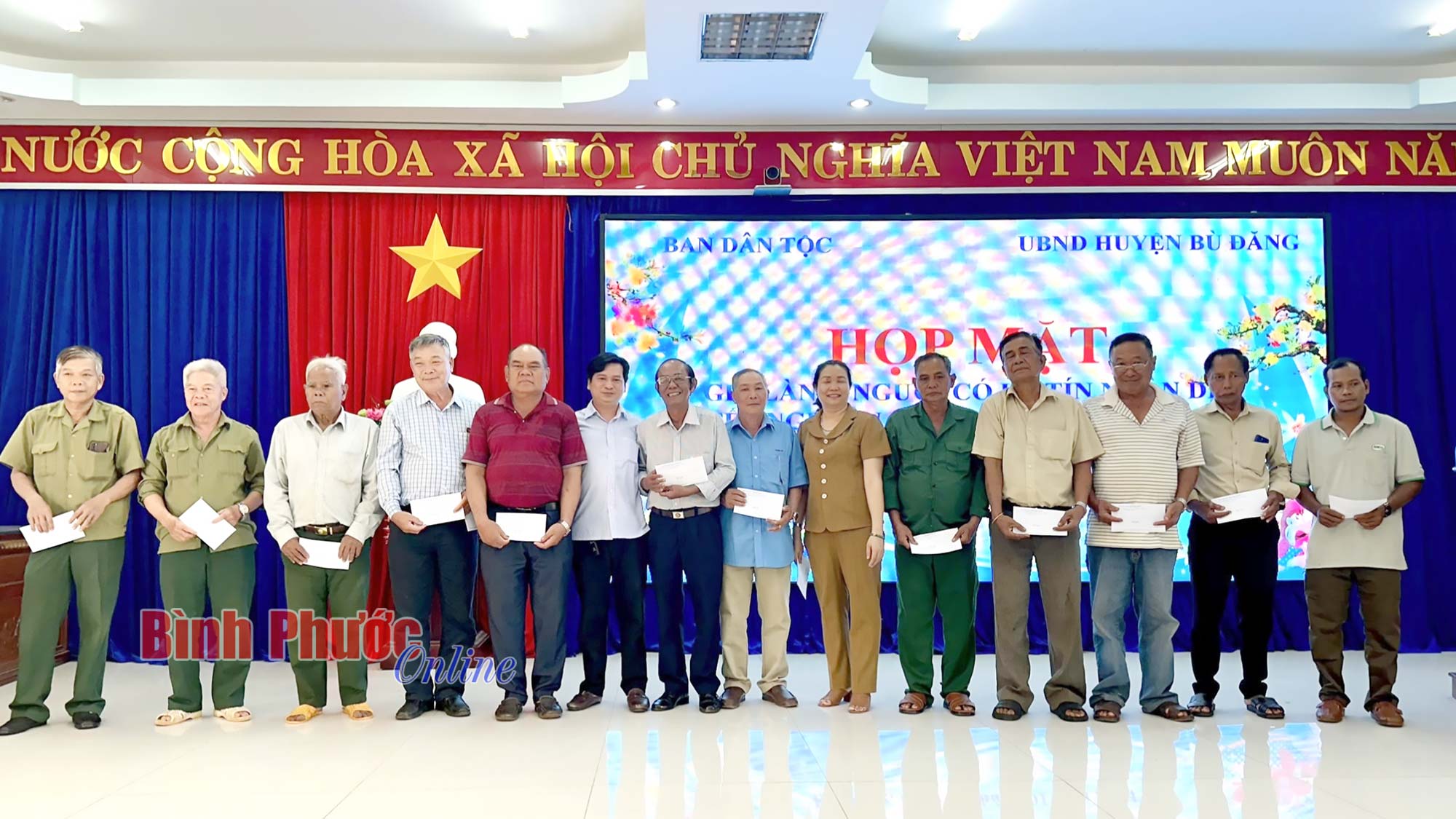 * Chiều cùng ngày, Ban Dân tộc tỉnh phối hợp với UBND huyện Bù Đăng tổ chức họp mặt, chúc tết và tặng quà 17 già làng, 90 người có uy tín trong đồng bào dân tộc thiểu số trên địa bàn huyện.