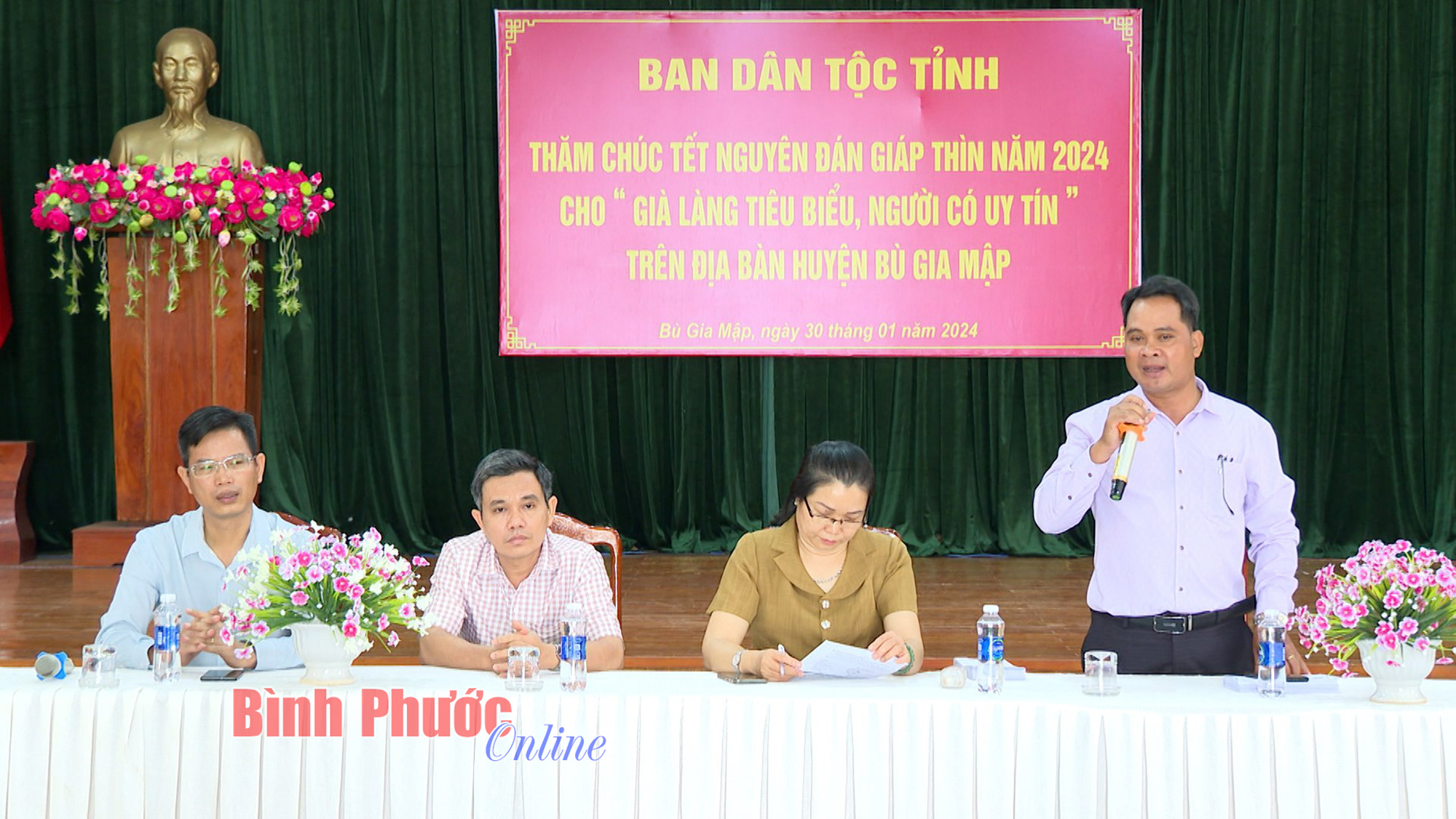 * Cũng trong sáng 30-1, Ban Dân tộc tỉnh đã thăm, chúc tết các già làng tiêu biểu, người có uy tín trên địa bàn huyện Bù Gia Mập.