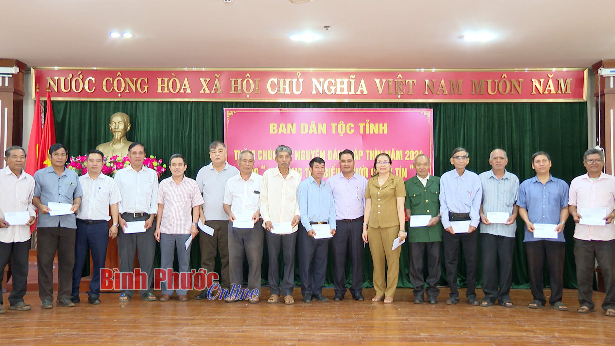 Dịp này, Ban dân tộc tỉnh đã trao 30 phần quà, mỗi phần trị giá 500 ngàn đồng đến người có uy tín và già làng tiêu biểu trên địa bàn huyện Bù Đốp.