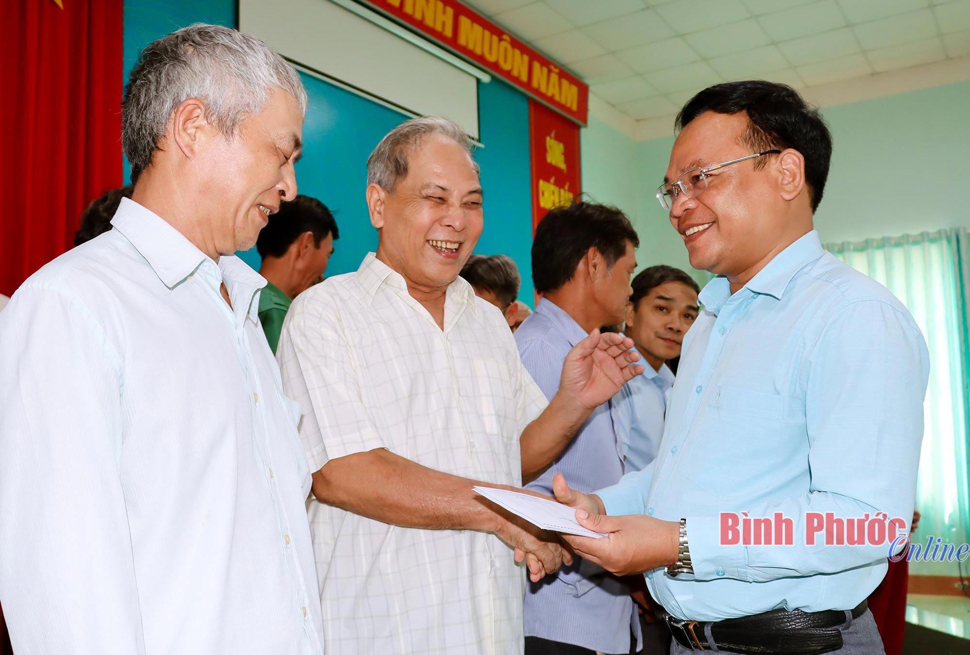 Ban Dân tộc tỉnh, huyện Phú Riềng tặng quà các già làng, người có uy tín tiêu biểu trên địa bàn huyện