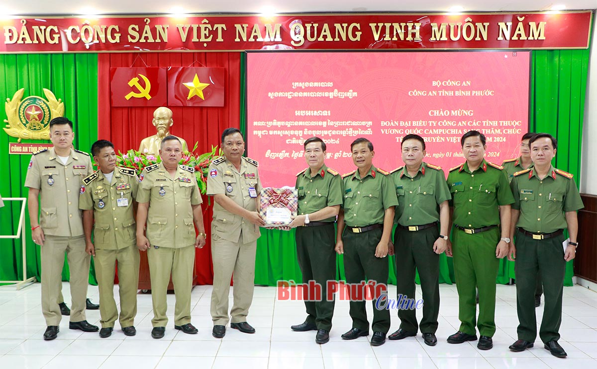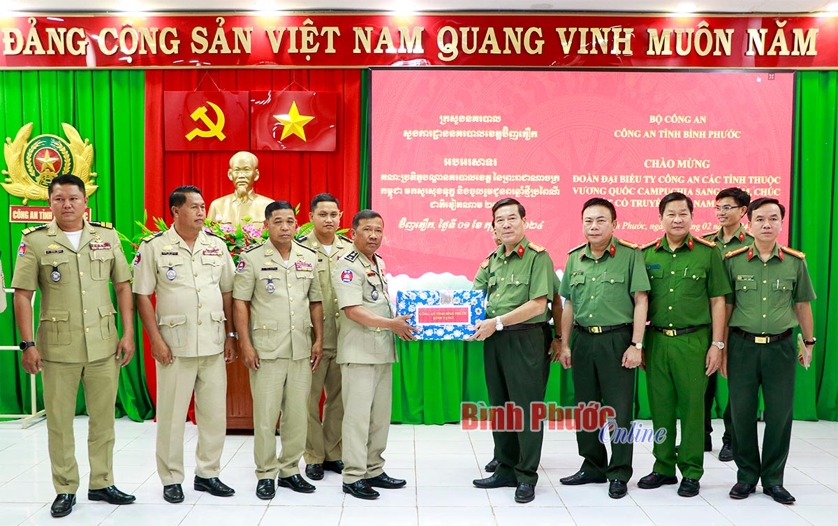 Công an tỉnh Bình Phước và Công an các tỉnh Vương quốc Campuchia đã trao cho nhau những phần quà chúc mừng năm mới, thắt chặt hơn nữa tình đoàn kết, hữu nghị giữa hai bên