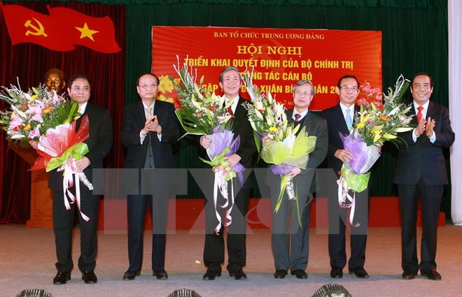 Ông Đinh Thế Huynh, Ủy viên Bộ Chính trị, Thường trực Ban Bí thư trao Quyết định và tặng hoa cho ông Phạm Minh ChínhCác ông: Đinh Thế Huynh, Ủy viên Bộ Chính trị, Thường trực Ban Bí thư; Trần Quốc Vượng, Ủy viên Bộ Chính trị, Bí thư Trung ương Đảng, Chủ nhiệm Ủy ban Kiểm tra Trung ương; Tô Huy Rứa, Ủy viên Bộ Chính trị, Bí thư Trung ương Đảng, Trưởng ban Tổ chức Trung ương khóa XI; Nguyễn Văn Nên, Bí thư Trung ương Đảng, Chánh Văn phòng Trung ương đã dự hội nghị.