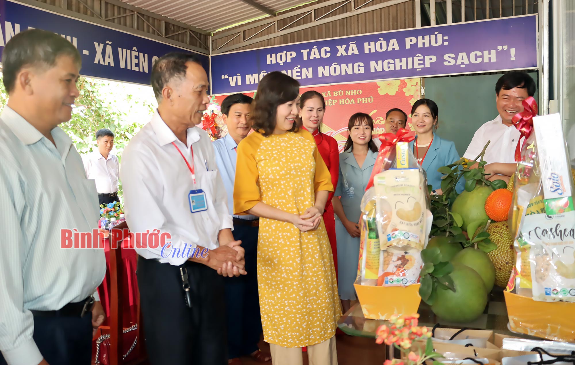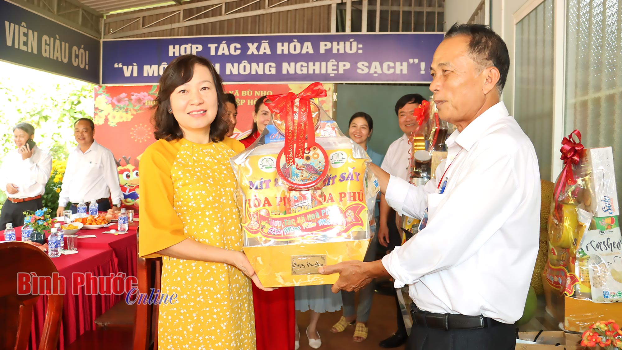 Phó Bí thư Thường trực Tỉnh ủy, Chủ tịch HĐND tỉnh Huỳnh Thị Hằng và đoàn công tác chúc tết Hợp tác xã Nông nghiệp sạch Hòa Phú