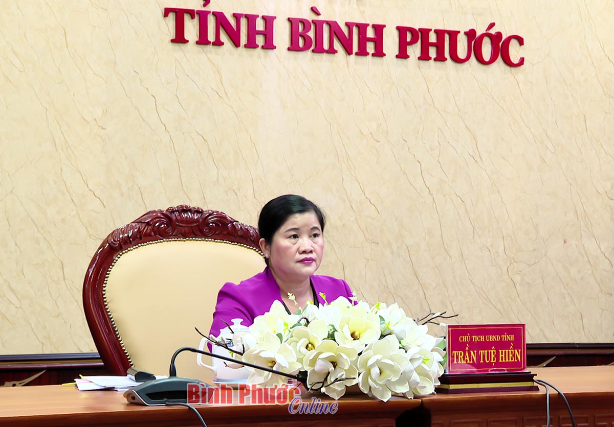 Chủ tịch UBND tỉnh Trần Tuệ Hiền và lãnh đạo các sở, ban, ngành, địa phương dự phiên họp tại điểm cầu tỉnh Bình Phước