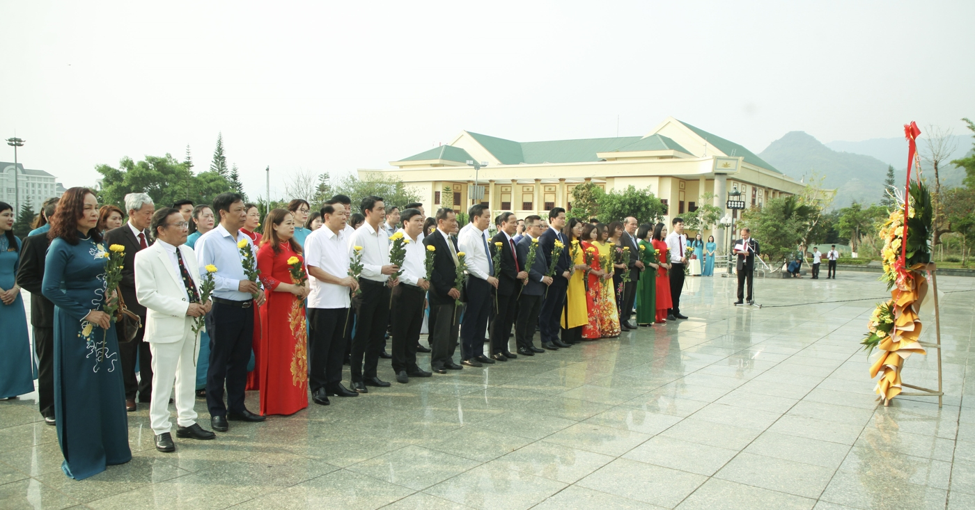 Dự lễ dâng hoa có đồng chí Lê Quốc Minh - Ủy viên Ban Chấp hành (BCH) Trung ương Đảng, Tổng Biên tập Báo Nhân Dân, Phó trưởng Ban Tuyên giáo Trung ương, Chủ tịch Hội Nhà báo Việt Nam; Vũ Mạnh Hà - Ủy viên Dự khuyết BCH Trung ương Đảng, Phó Bí thư Thường trực Tỉnh ủy; Lê Đức Dục - Ủy viên Ban Thường vụ (BTV), Trưởng Ban Tuyên giáo Tỉnh ủy cùng các đại biểu về dự lễ kỷ niệm.