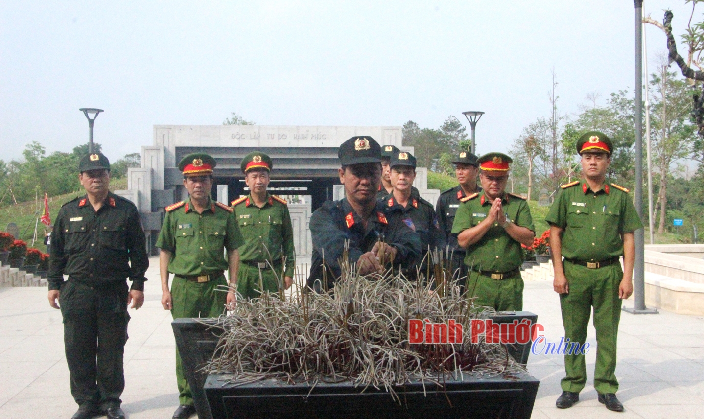 Đại diện Ban Huấn luyện khối diễu binh, diễu hành Công an nhân dân tưởng niệm các anh hùng liệt sĩ tại Nghĩa trang liệt sĩ A1