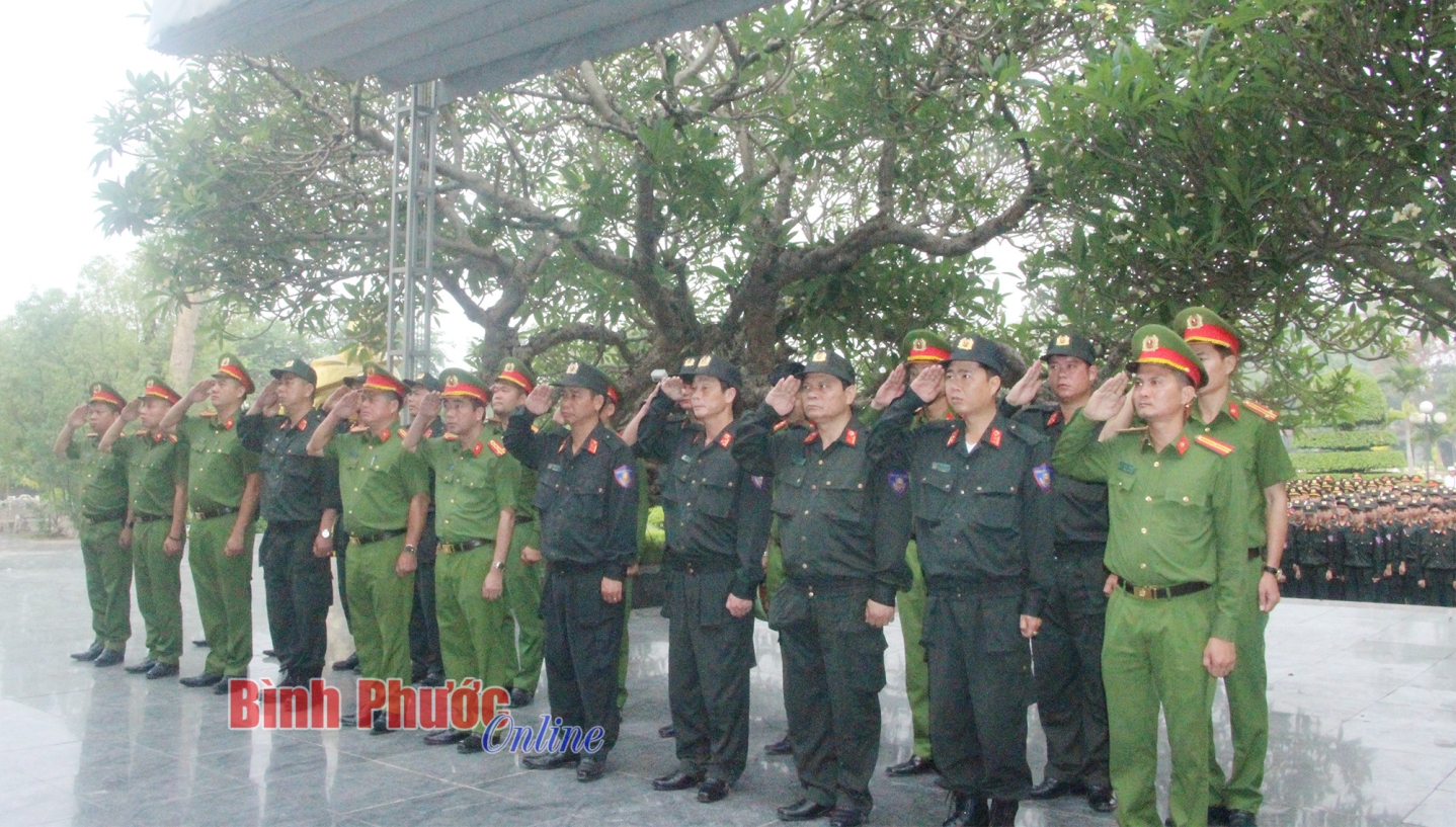 Gần 1.000 cán bộ, chiến sĩ khối diễu binh, diễu hành Công an nhân dân đến viếng Nghĩa trang liệt sĩ A1