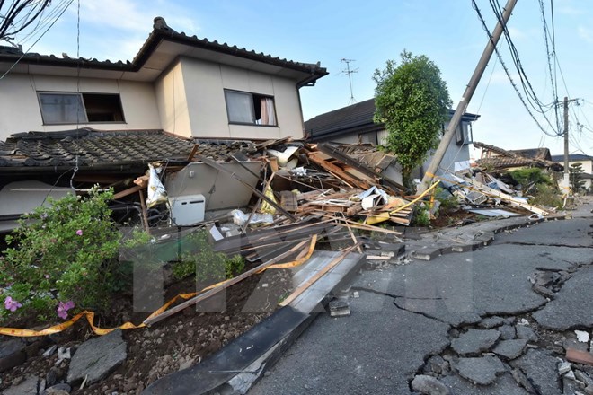 Nhiều ngôi nhà bị sập sau trận động đất ở Mashiki, tỉnh KumamotoTrong vòng hai ngày 15 và 16-4, tỉnh Kumamoto thuộc đảo Kyushu của Nhật đã hứng chịu 2 trận động đất lần lượt có cường độ 6,5 và 7,3 độ Richter, khiến 32 người thiệt mạng.