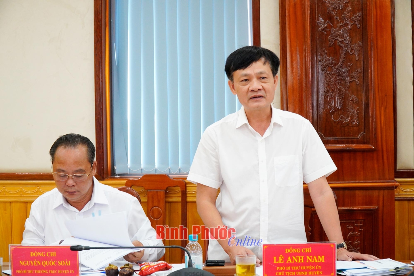 Thành viên đoàn công tác của Học viện Chính trị quốc gia Hồ Chí Minh và lãnh đạo huyện Phú Riềng trao đổi, thảo luận, làm rõ một số vấn đề