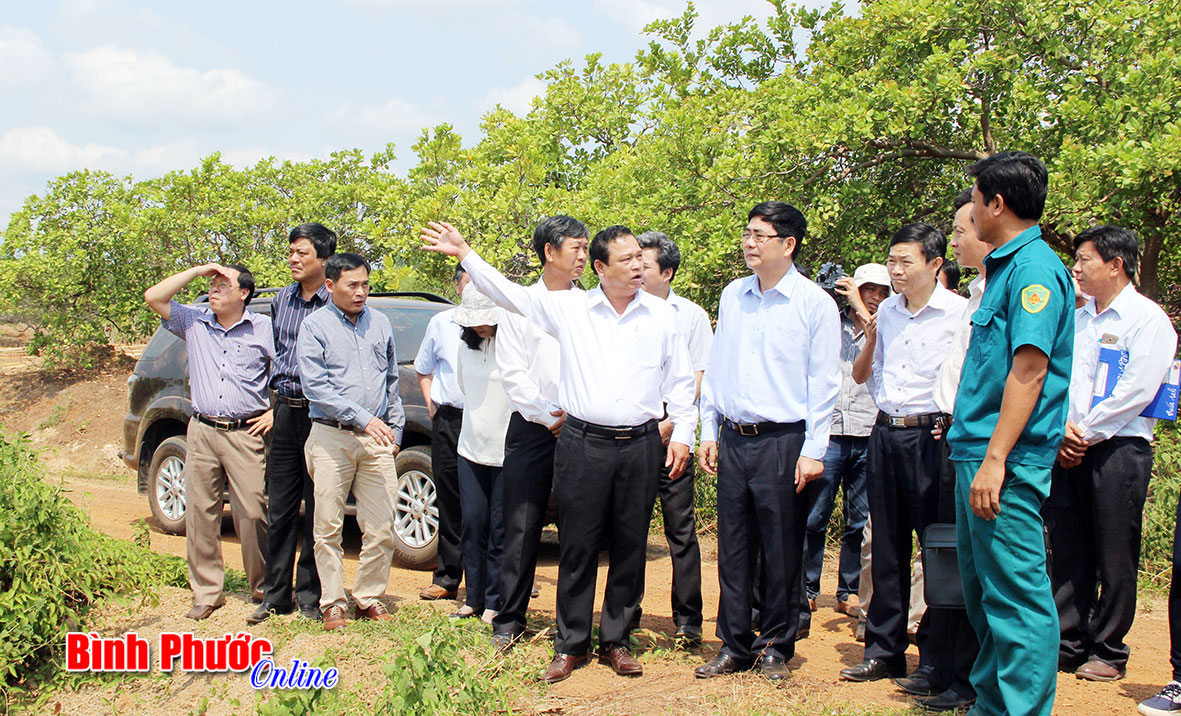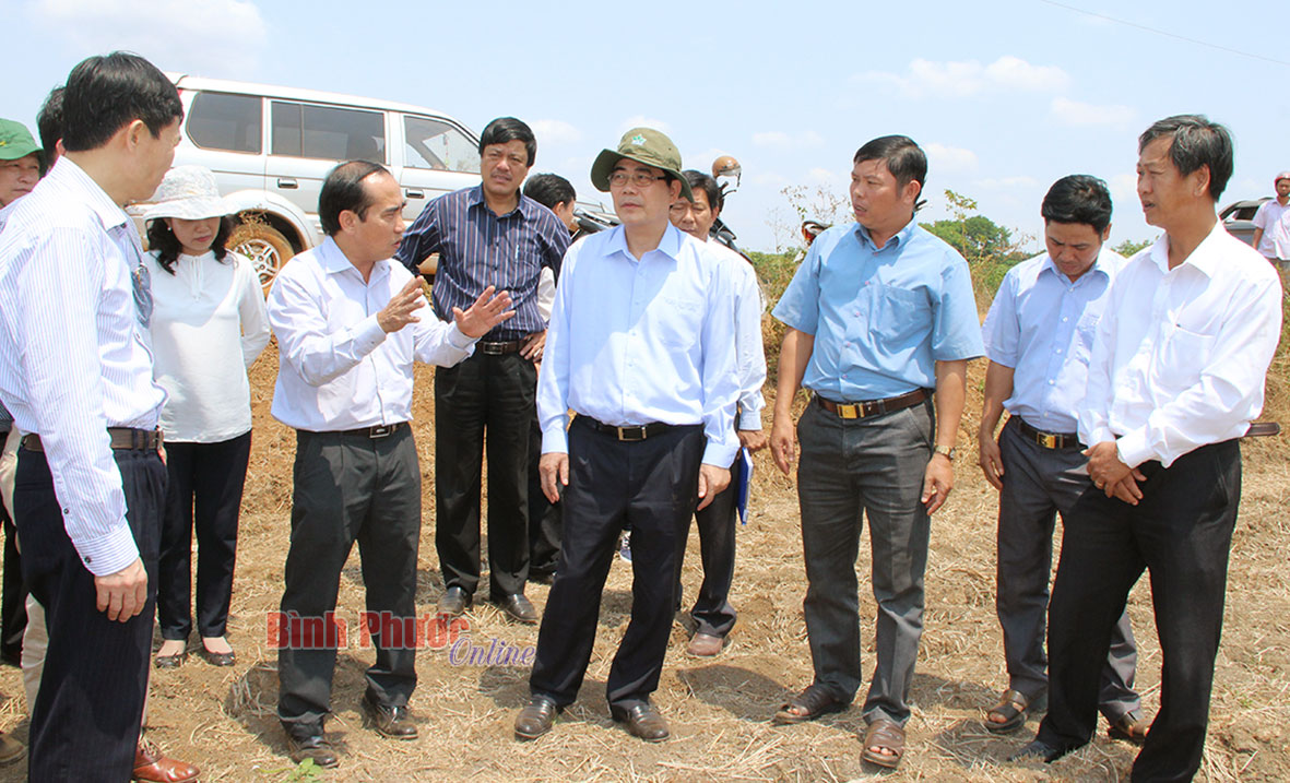 Bộ trưởng cùng đoàn lãnh đạo tỉnh thăm một số nơi bị thiệt hại năng do hạn hán trên địa bàn huyện Bù Đốp