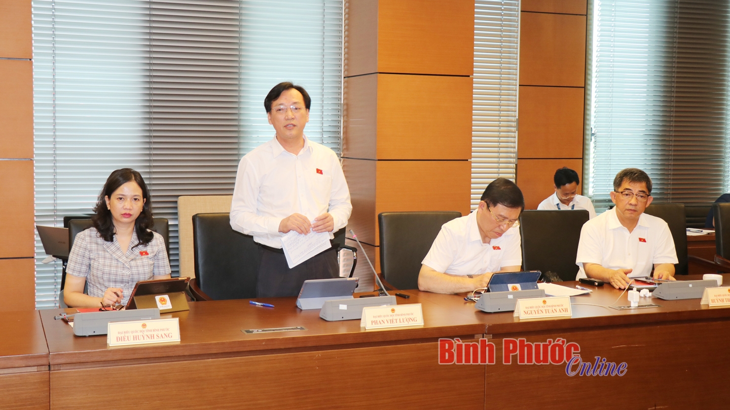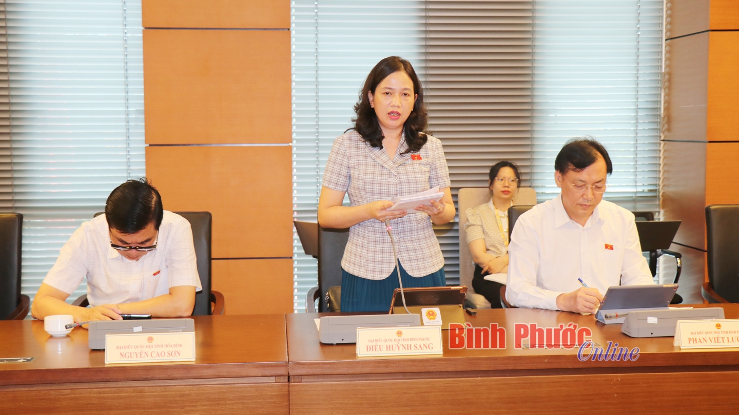 Đại biểu Điểu Huỳnh Sang, Phó Trưởng đoàn chuyên trách, phụ trách Đoàn ĐBQH tỉnh phát biểu thảo luận