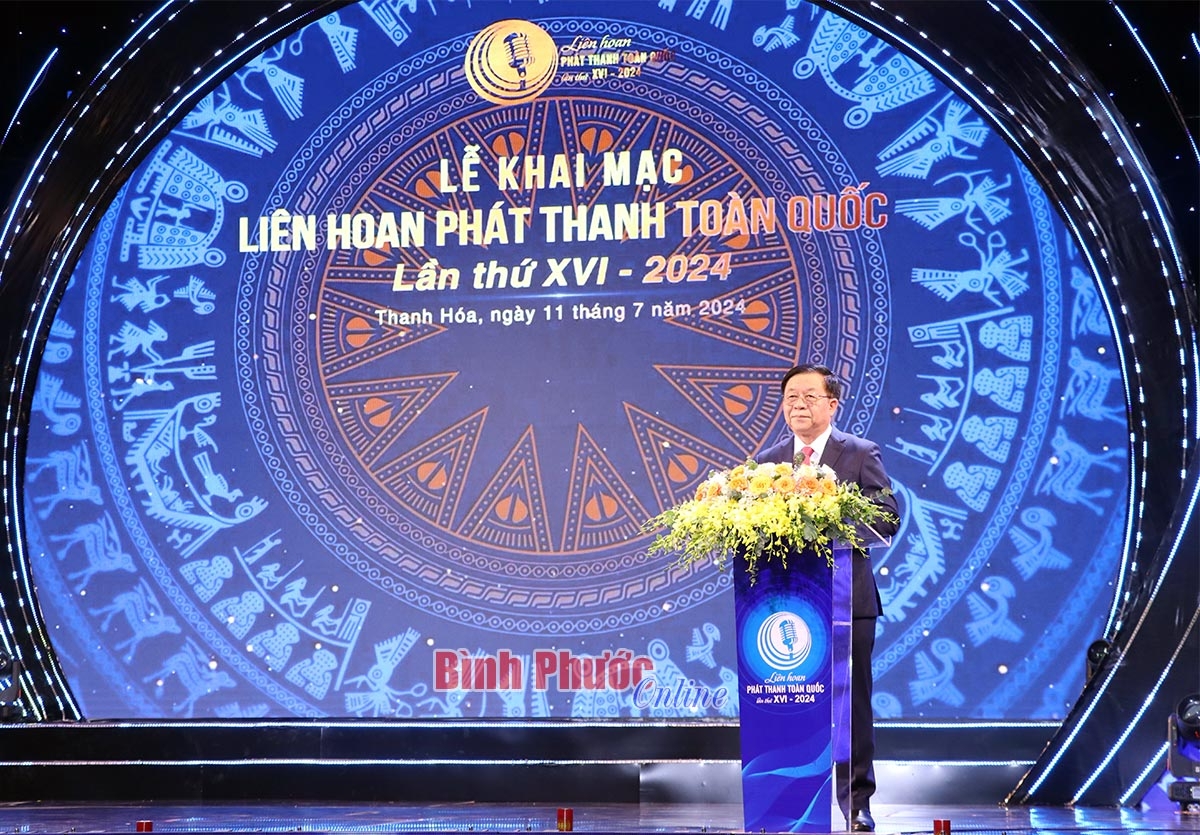 Hôm nay, tại tỉnh Thanh Hóa, vùng đất “địa linh nhân kiệt”, giàu bản sắc văn hóa, truyền thống cách mạng và mến khách, chúng ta vui mừng, phấn khởi dự lễ khai mạc Liên hoan phát thanh toàn quốc lần thứ 16 năm 2024 - ngày hội lớn của ngành phát thanh cả nước. Thay mặt lãnh đạo Đảng, Nhà nước, tôi thân ái gửi tới các đồng chí đại biểu, nhất là các phóng viên, biên tập viên, kỹ thuật viên, phát thanh viên, văn nghệ sĩ và người lao động đang công tác trong ngành phát thanh những lời chúc mừng tốt đẹp nhất. Chúc các đồng chí luôn mạnh khỏe, hạnh phúc trong cuộc sống, thành công trong sự nghiệp vẻ vang của nền báo chí cách mạng nước nhà.