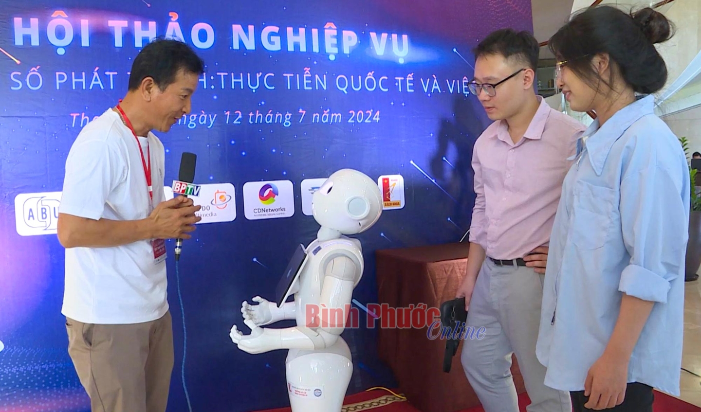 Bằng kỹ năng tương tác đa ngôn ngữ, 2 chú robot có thể giao tiếp với đại biểu tham dự Liên hoan Phát thanh toàn quốc lần thứ XVI năm 2024 tại Thanh Hóa bằng những câu thoại dí dỏm, đúng trọng tâm. Đây cũng là một nét thú vị tại liên hoan lần này khi mà chủ đề xuyên suốt của sự kiện là “Phát thanh Việt Nam - đa dạng trong chuyển đổi số”.