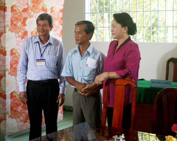 Chủ tịch Quốc hội Nguyễn Thị Kim Ngân kiểm tra một tổ bầu cử ở xã Tân Tiến, thành phố Vị Thanh