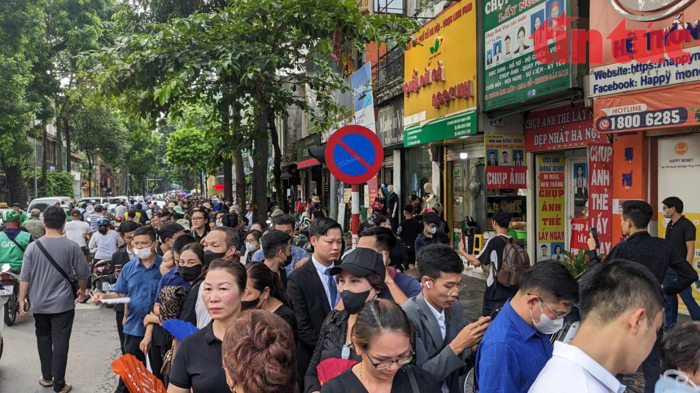 Người dân xếp hàng vào viếng nối dài từ đường Phạm Đình Hồ lên tới ngã tư phố Lò Đúc đến phố Nguyễn Công Trứ