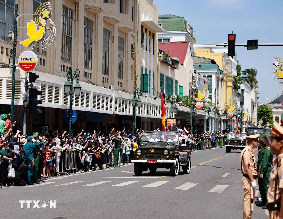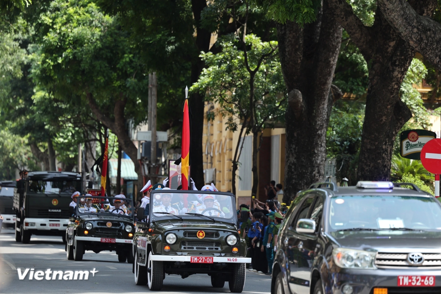 Đoàn xe nghi lễ di chuyển qua Quảng trường Cách mạng tháng 8. (Ảnh: TTXVN)