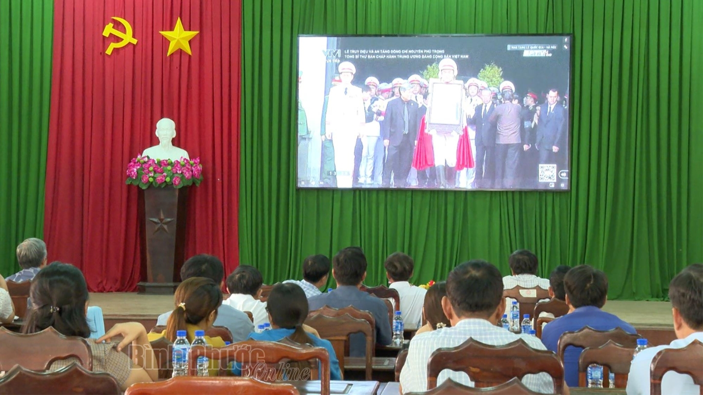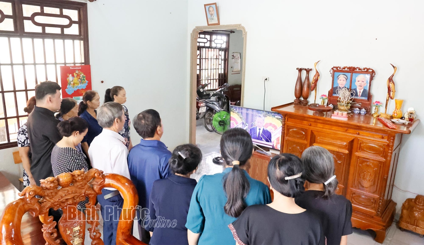 Tại gia đình ông Bùi Văn Ngọc, Chủ tịch Hội Cựu chiến binh phường Tân Phú, thành phố Đồng Xoài, nhiều cán bộ, đảng viên xúc động, bùi ngùi khi theo dõi Lễ truy điệu và Lễ an táng Tổng Bí thư Nguyễn Phú Trọng qua truyền hình do BPTV tiếp sóng. Vừa theo dõi, mọi người nhắc nhớ những việc làm, sự kiện của đất nước gắn liền với tên tuổi của Tổng Bí thư như một cách để tưởng nhớ, tri ân người lãnh đạo xuất sắc.