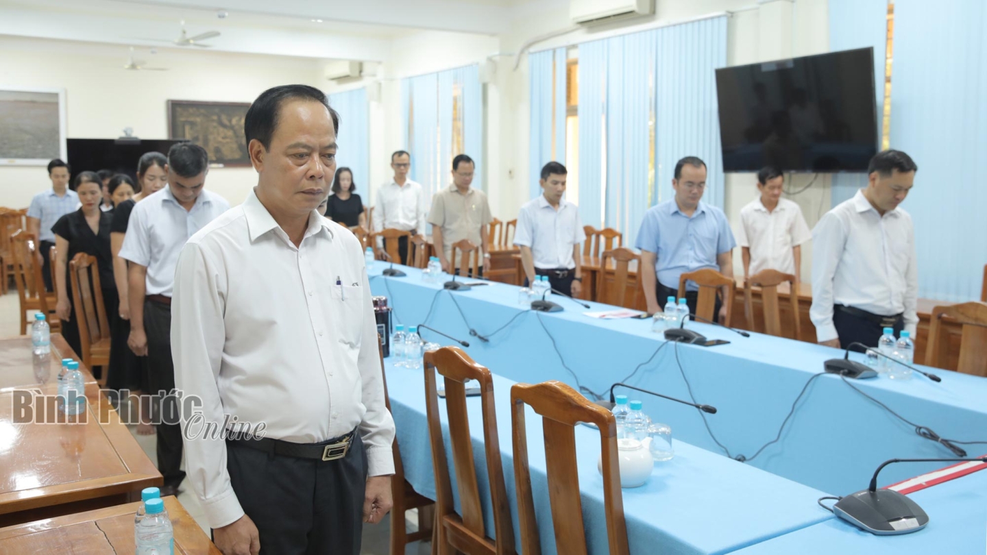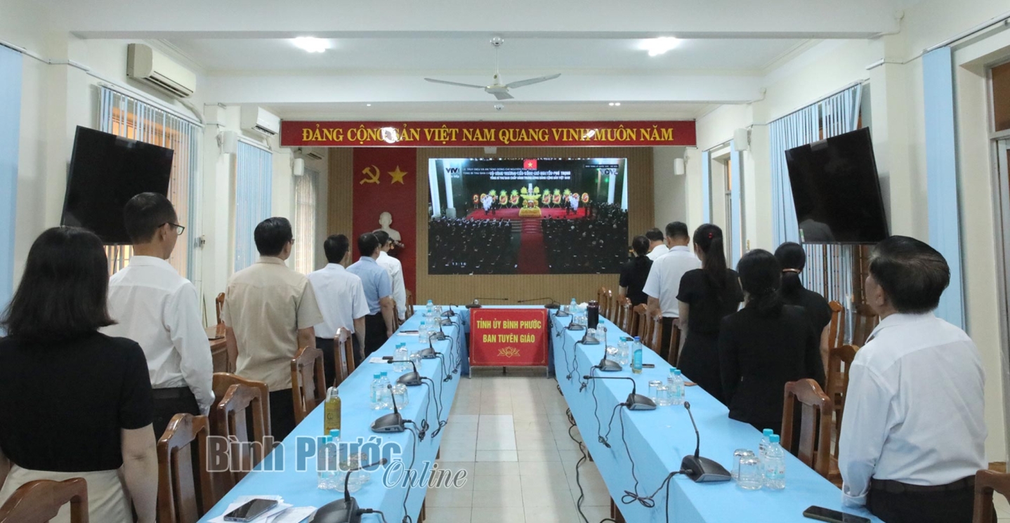 Tại Ban Tuyên giáo Tỉnh ủy Bình Phước, ngay từ hơn 12 giờ, lãnh đạo, cán bộ, viên chức đơn vị đã sắp xếp công việc, tập trung tại hội trường để theo dõi Lễ truy điệu và Lễ an táng Tổng Bí thư Nguyễn Phú Trọng qua kênh truyền hình trực tiếp.