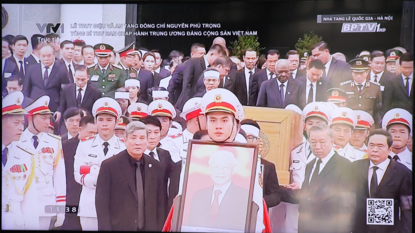 Nhiều cán bộ, đảng viên và người dân sắp xếp thời gian để theo dõi Lễ tang qua truyền hình tiếp sóng nhằm bày tỏ lòng thành kính Tổng Bí thư Nguyễn Phú Trọng
