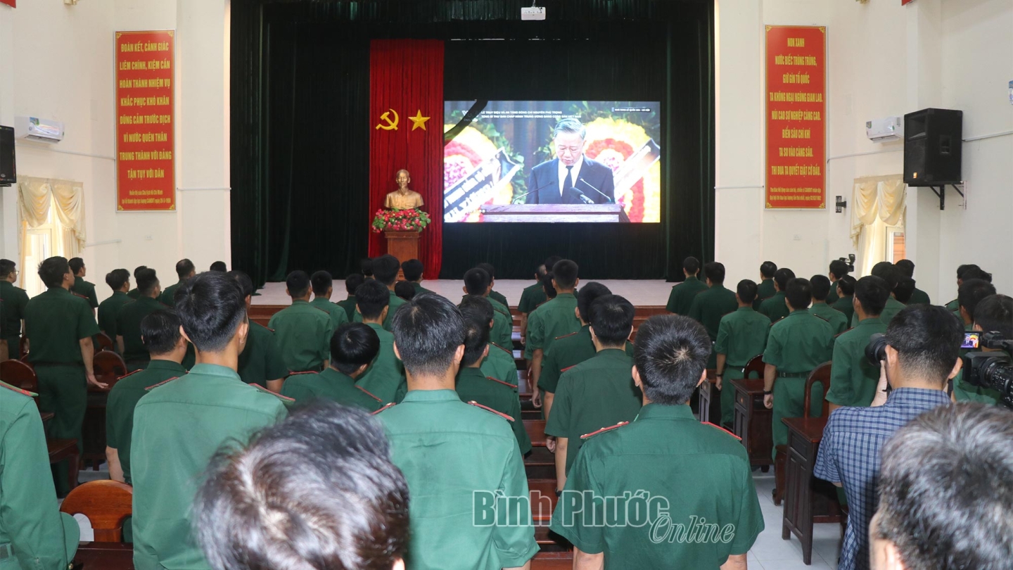 Đúng 13 giờ, tại hội trường Bộ Chỉ huy Bộ đội Biên phòng tỉnh Bình Phước, cán bộ, chiến sĩ khối cơ quan Bộ Chỉ huy Bộ đội Biên phòng tỉnh đã tập trung đông đủ, xúc động theo dõi chương trình truyền hình trực tiếp Lễ truy điệu Tổng Bí thư Nguyễn Phú Trọng. Trong không khí trang nghiêm, thành kính, cán bộ, chiến sĩ đều đồng loạt hướng mắt lên màn hình, xúc động nghe Ủy viên Bộ Chính trị, Chủ tịch nước Tô Lâm đọc điếu văn tiễn biệt Tổng Bí thư Nguyễn Phú Trọng. Không ai muốn rời xa người lãnh tụ xuất sắc, trọn đời vì nước vì dân này.