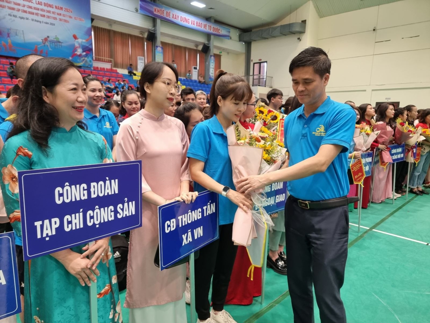 Công đoàn Viên chức Việt Nam phối hợp với Cục Thể dục thể thao (Bộ Văn hóa, Thể thao và Du lịch) tổ chức Lễ khai mạc Hội thao cán bộ, công chức, viên chức, lao động năm 2024 tại Nhà thi đấu Cầu Giấy (Hà Nội), ngày 16-5-2024. Ảnh: XM/Báo Tin tức