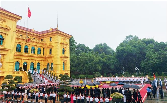 Quang cảnh Lễ đón chính thức Tổng thống Timor-Leste thăm cấp Nhà nước tới Việt Nam. Ảnh: Văn Điệp/TTXVN