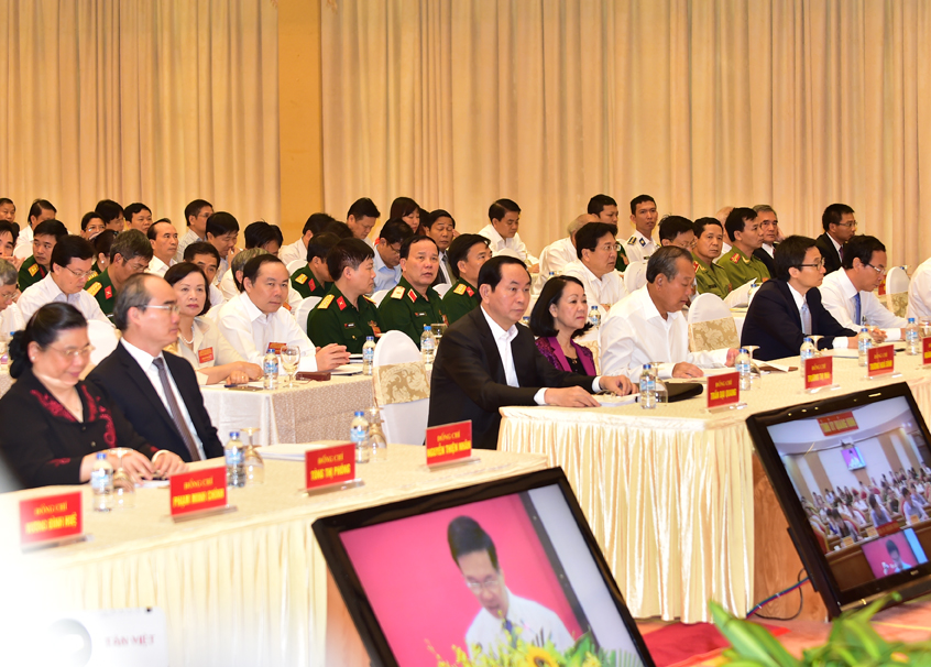 Các đồng chí lãnh đạo Đảng, Nhà nước và đại biểu dự hội nghị