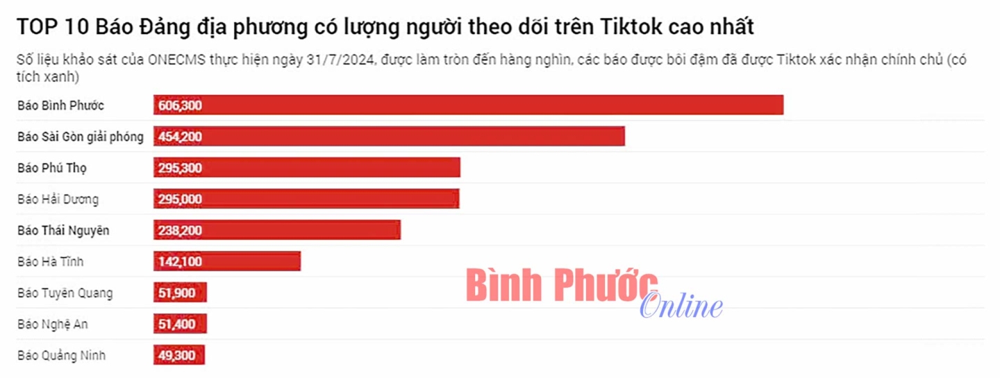 Cụ thể, kênh TikTok của BPTV hoạt động tại địa chỉ www.tiktok.com/@thbinhphuoc.mcv đang xếp ở vị trí thứ 1 trong top 10 kênh TikTok báo Đảng địa phương có lượng người theo dõi cao nhất với hơn 606 ngàn lượt theo dõi và 6,3 triệu lượt thích. TikTok của BPTV cũng là 1 trong rất ít kênh TikTok báo Đảng cả nước đã được chứng nhận tích xanh.