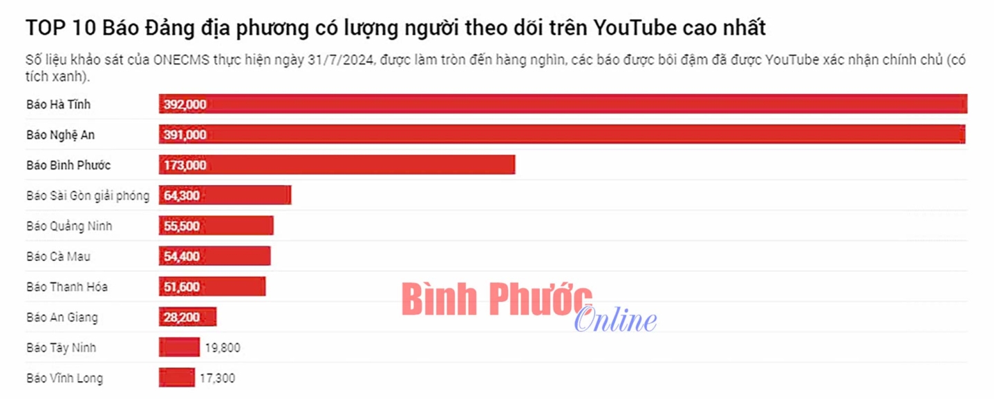 Trong khi đó, với hơn 165 ngàn lượt theo dõi, fanpage Báo Bình Phước cũng được xếp vị trí thứ 6 trong số 63 báo Đảng địa phương về số lượng công chúng theo dõi.