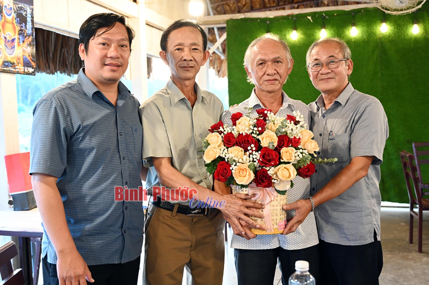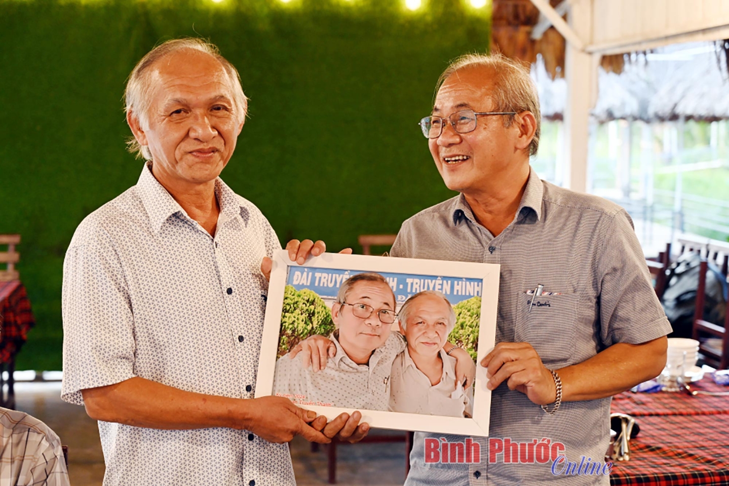 Phó Giám đốc - Phó Tổng Biên tập Đài Phát thanh - Truyền hình và Báo Bình Phước Phan Văn Thảo trao tặng biểu trưng của BPTV cho những người bạn đồng nghiệp các thế hệ tại Bù Đăng