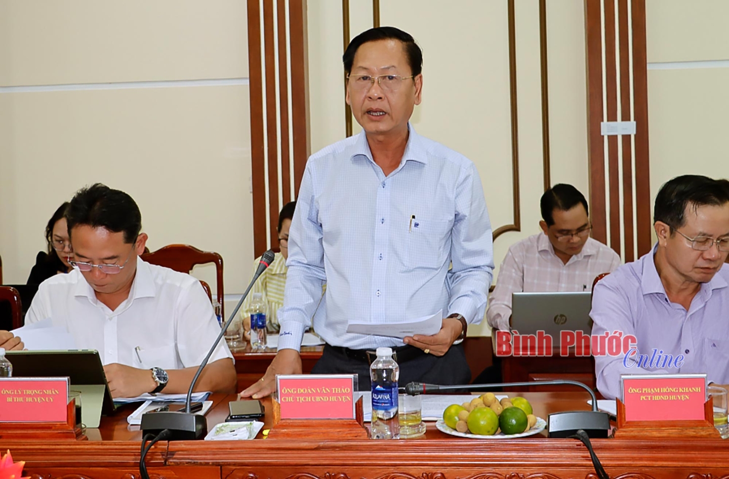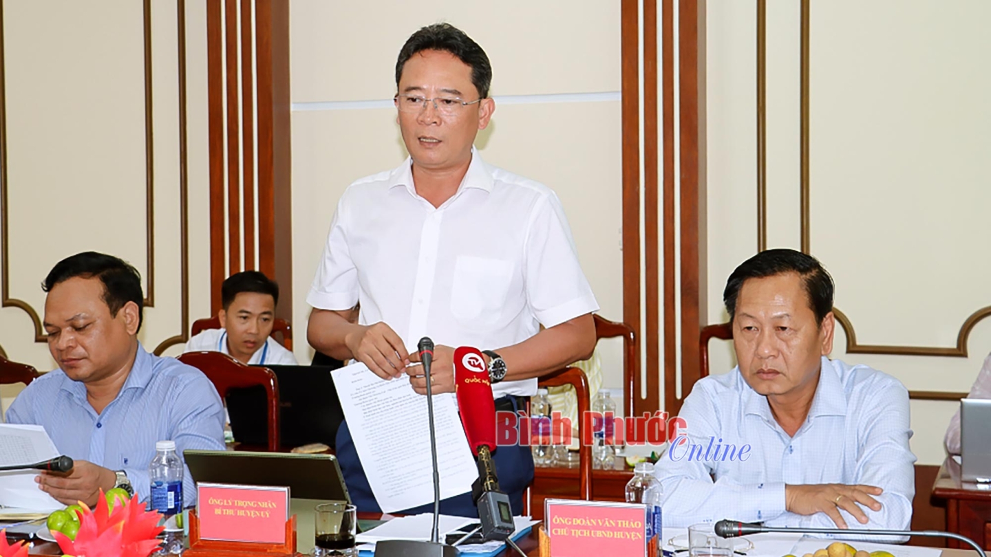 Ông Đoàn Văn Thảo, Chủ tịch UBND huyện Bù Gia Mập báo cáo về công tác cán bộ đối với đội ngũ cán bộ dân tộc thiểu số trên địa bàn